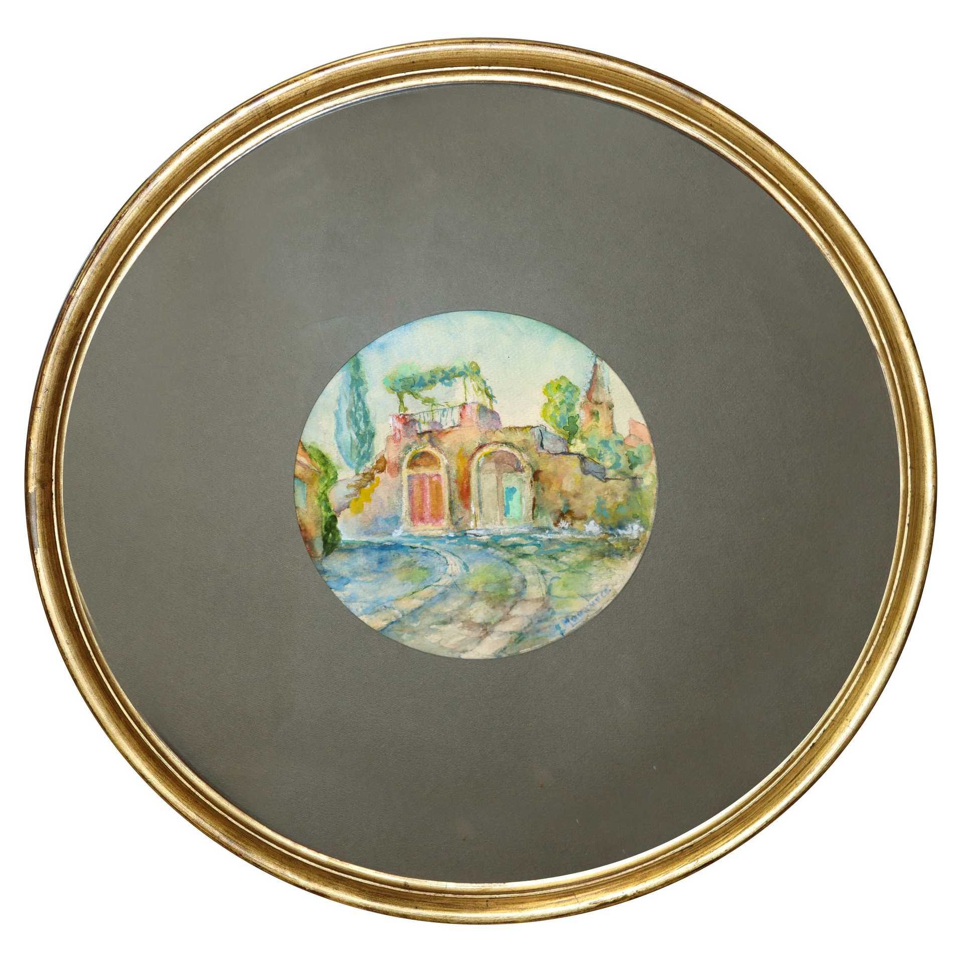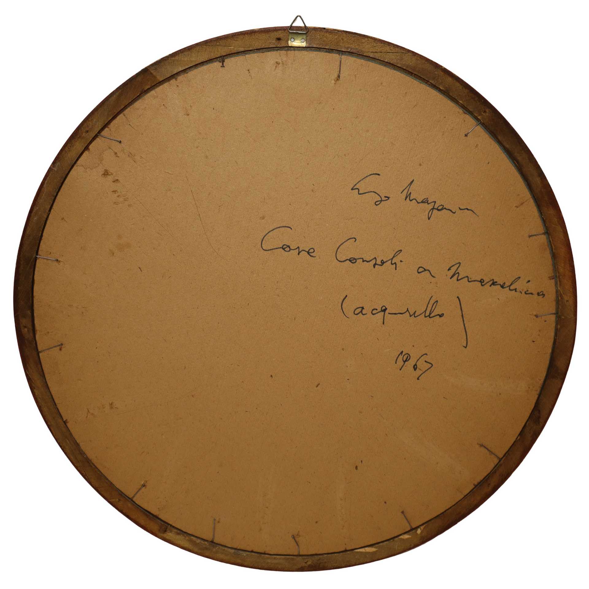 Enzo Maganuco (Acate 1896-Catania 1968) - Casa Consoli a Mascalucia, 1967 diametro cm 17 in cornice cm 43 acquerello su carta Firmato, titolato e datato sul retro
