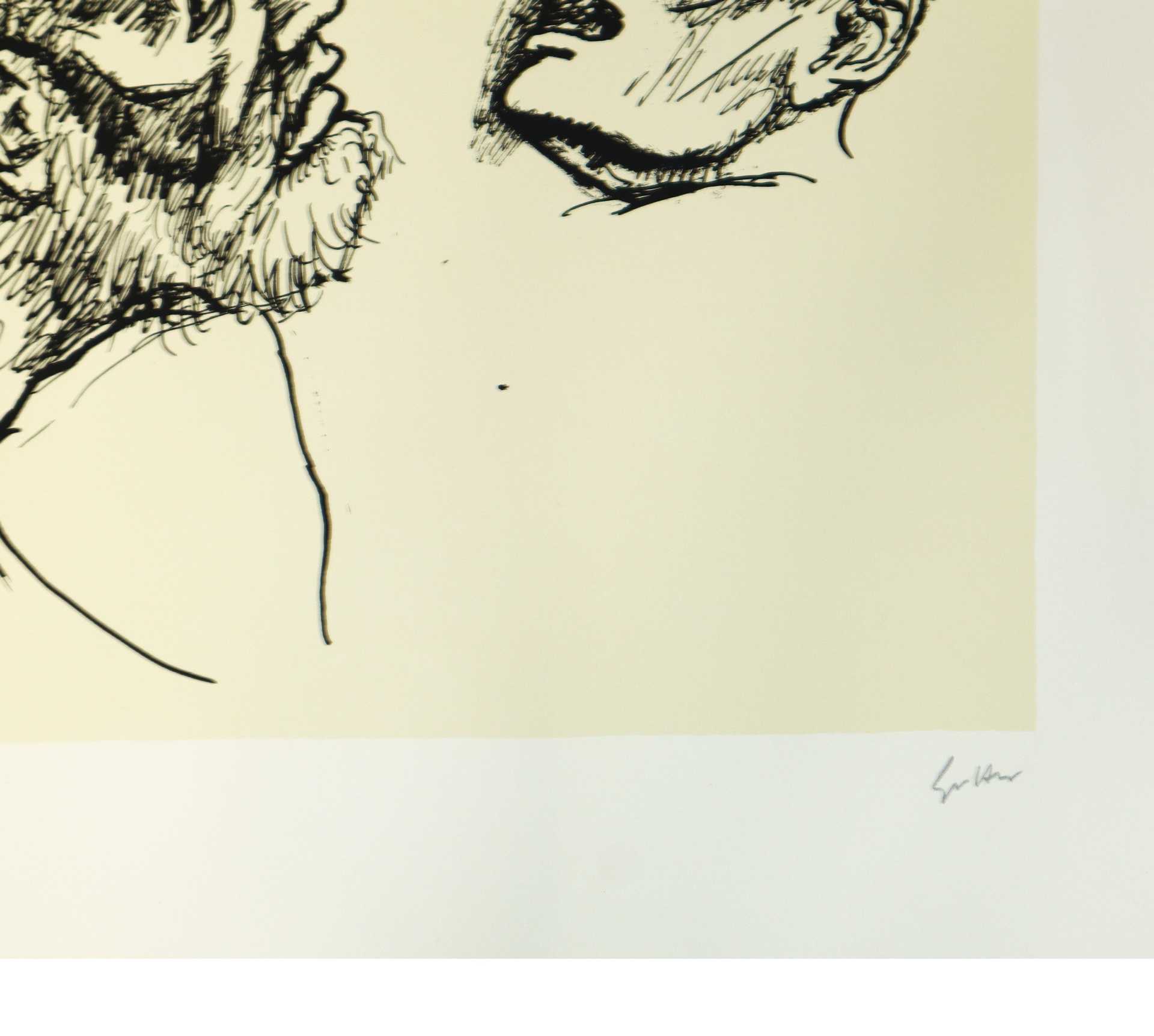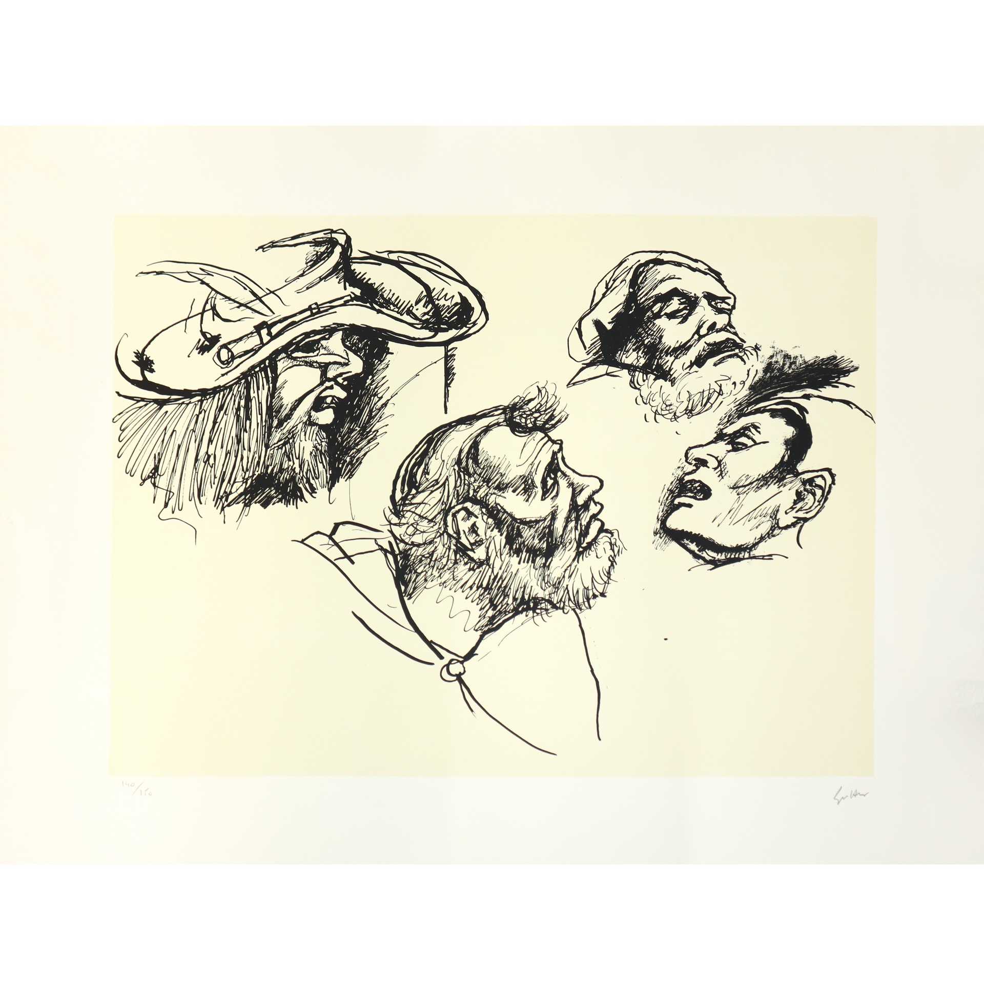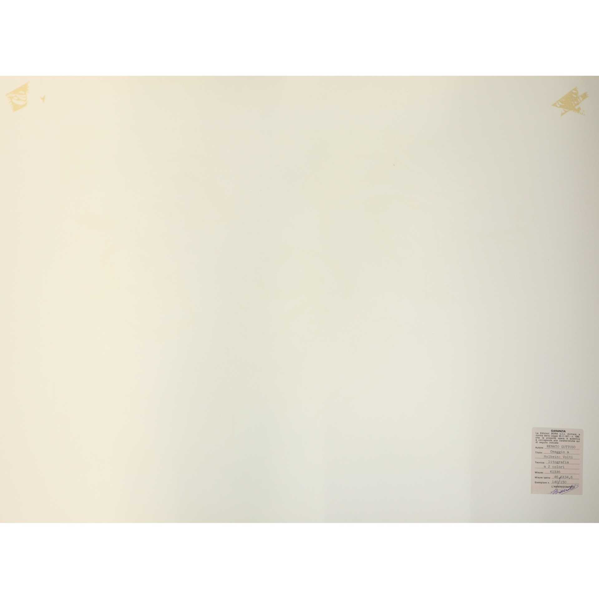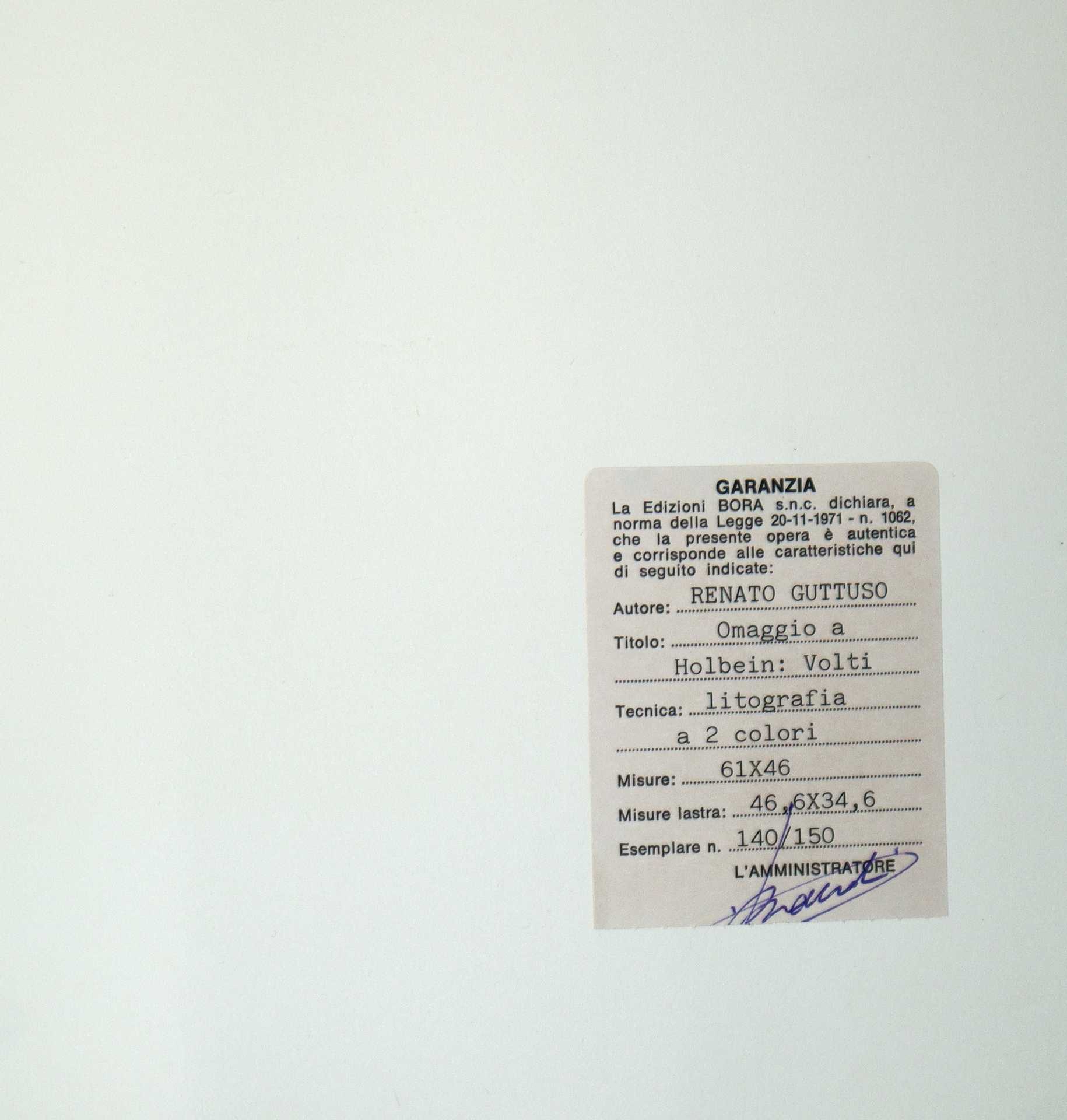 Renato Guttuso (Bagheria 1911-Roma 1987) - Omaggio a Holbein: Volti cm 61x46, misura lastra cm 46,6x34,6 Litografia a 2 colori Esemplare N. 140/150