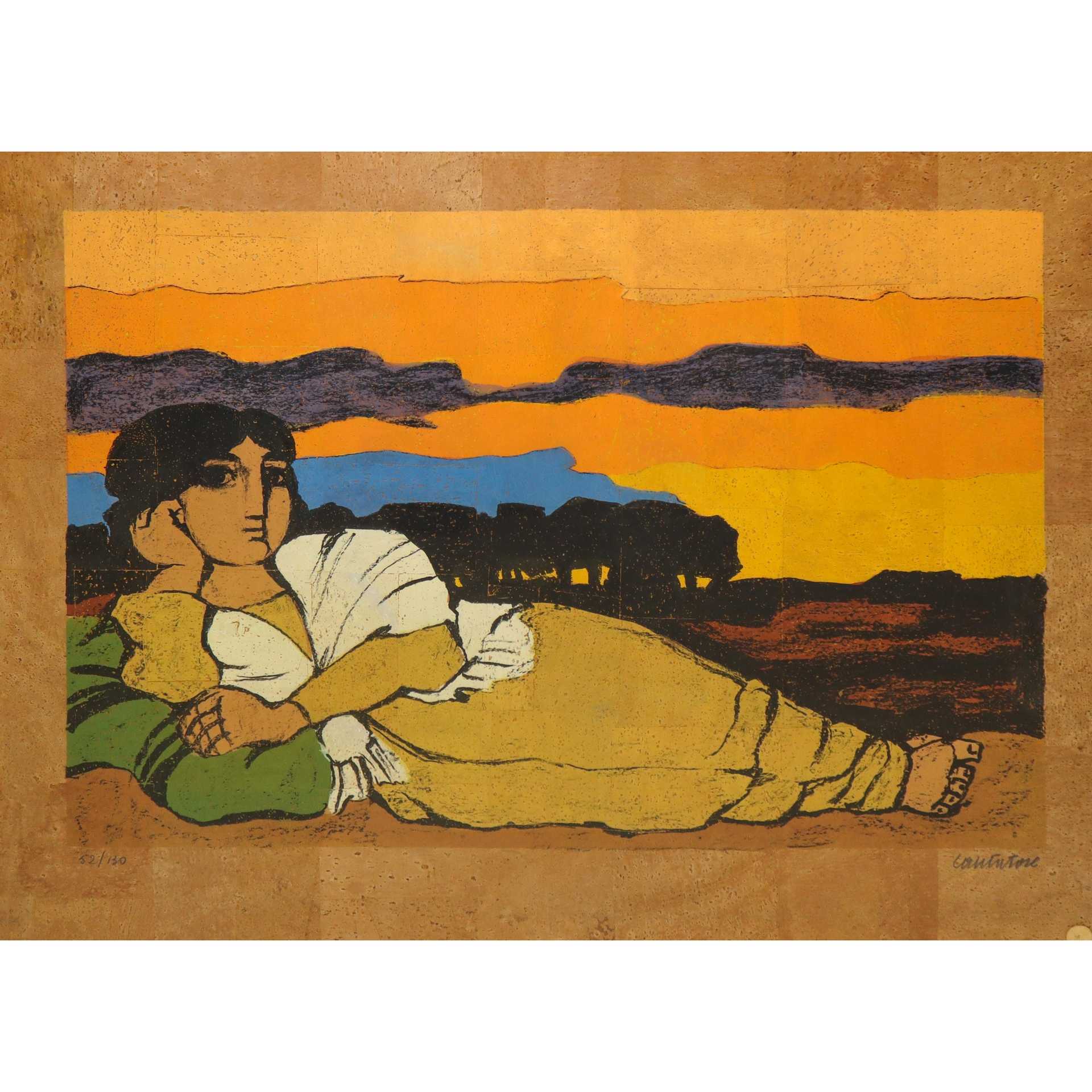 Domenico Cantatore (Ruvo di Puglia 1906-Parigi, Francia 1998) - Donna sdraiata h cm 60X80 in cornice 76X92 litografia Tiratura 52/130. Firmato in basso a destra