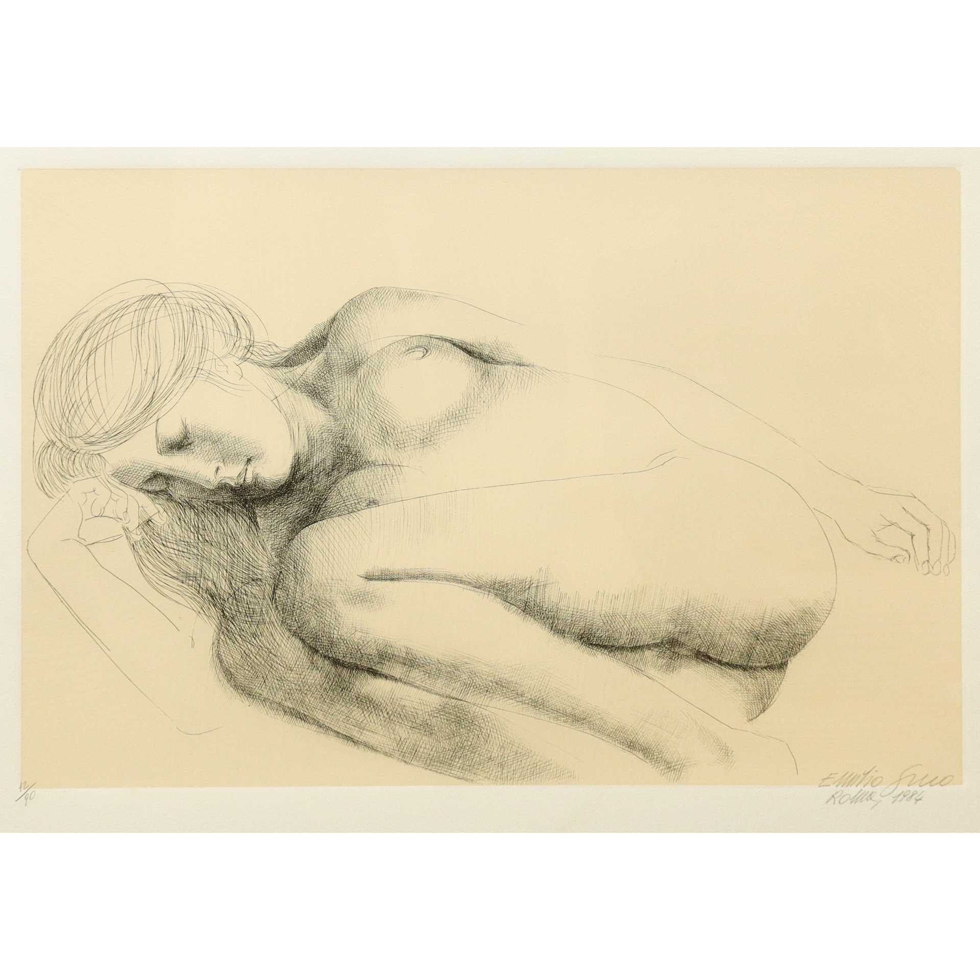 Emilio Greco (Catania 1913-Roma 1995) - Donna sdraiata, 1984 cm 49X33,5 in cornice cm 81X62 Acquaforte Firmato e datato in alto a destra