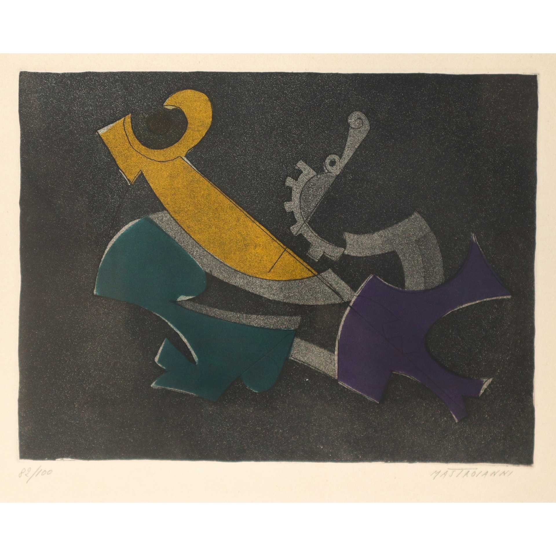 Umberto Mastroianni (Fontana Liri 21/09/1910-Marino 25/02/1998) - Rappresentazione di ingranaggi h cm 35,5X50 in cornice 41,5X55,5