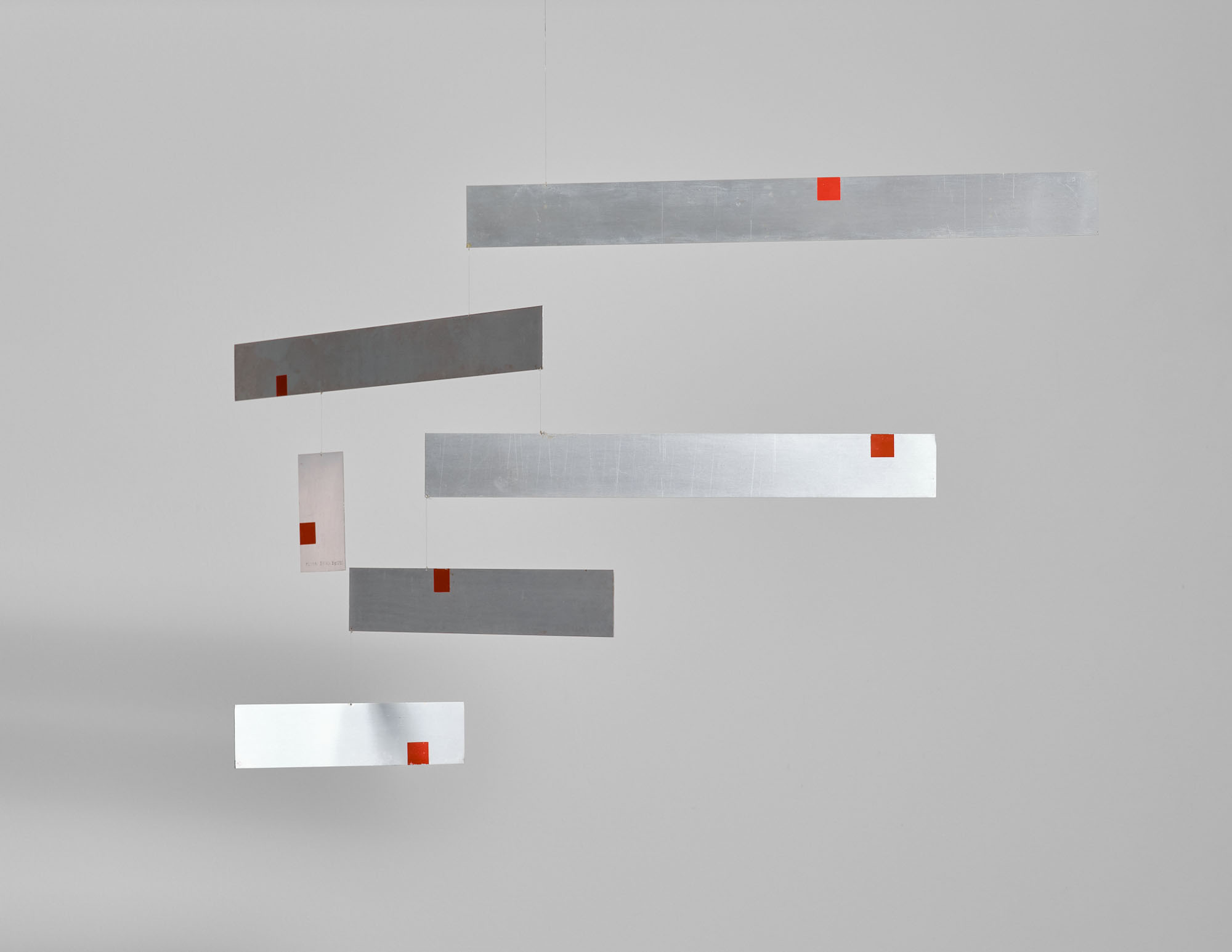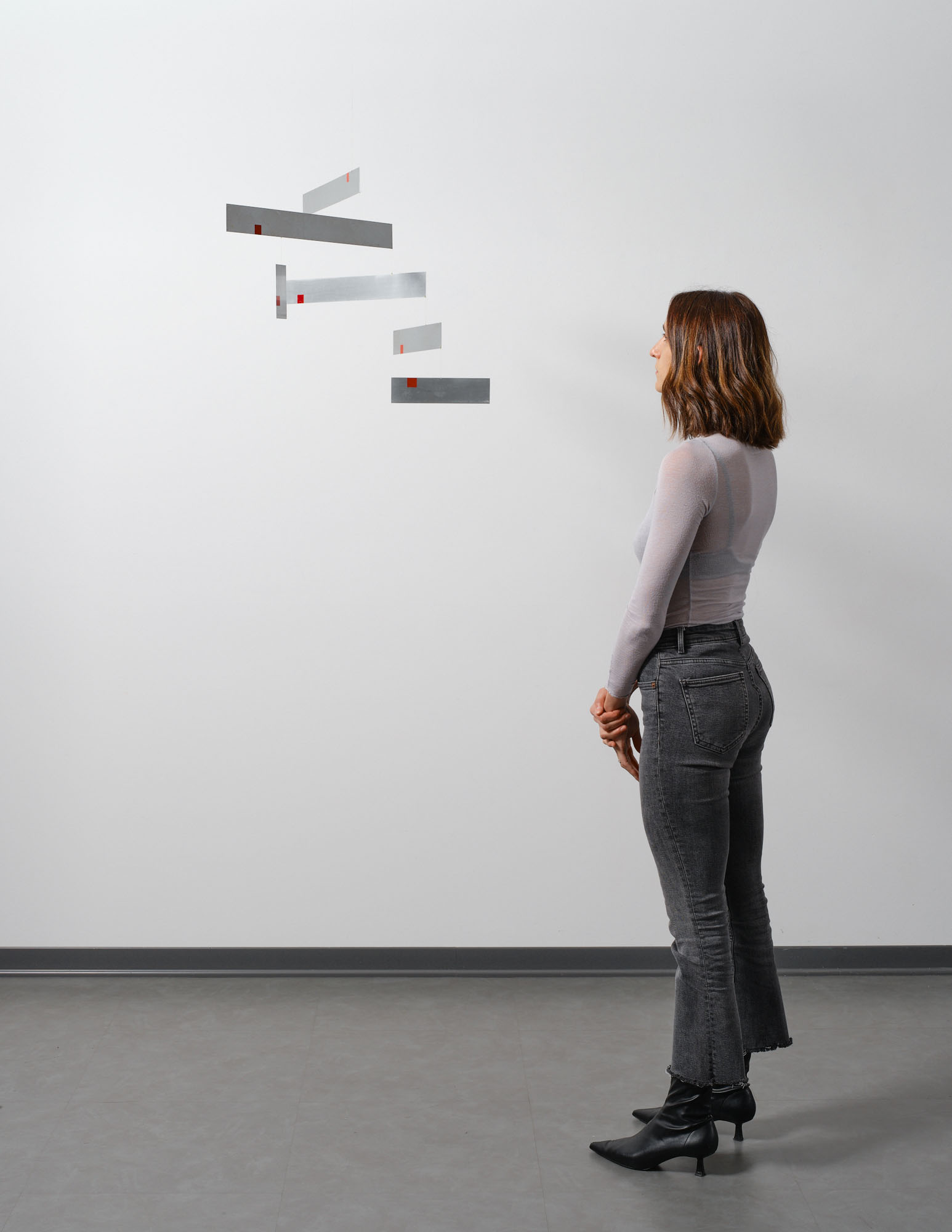 Multiplo, scultura in alluminio, smalto, filo di nylon, cm 45 x 80