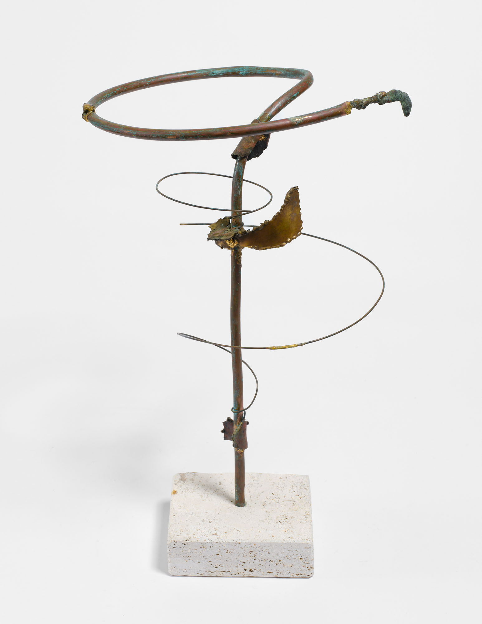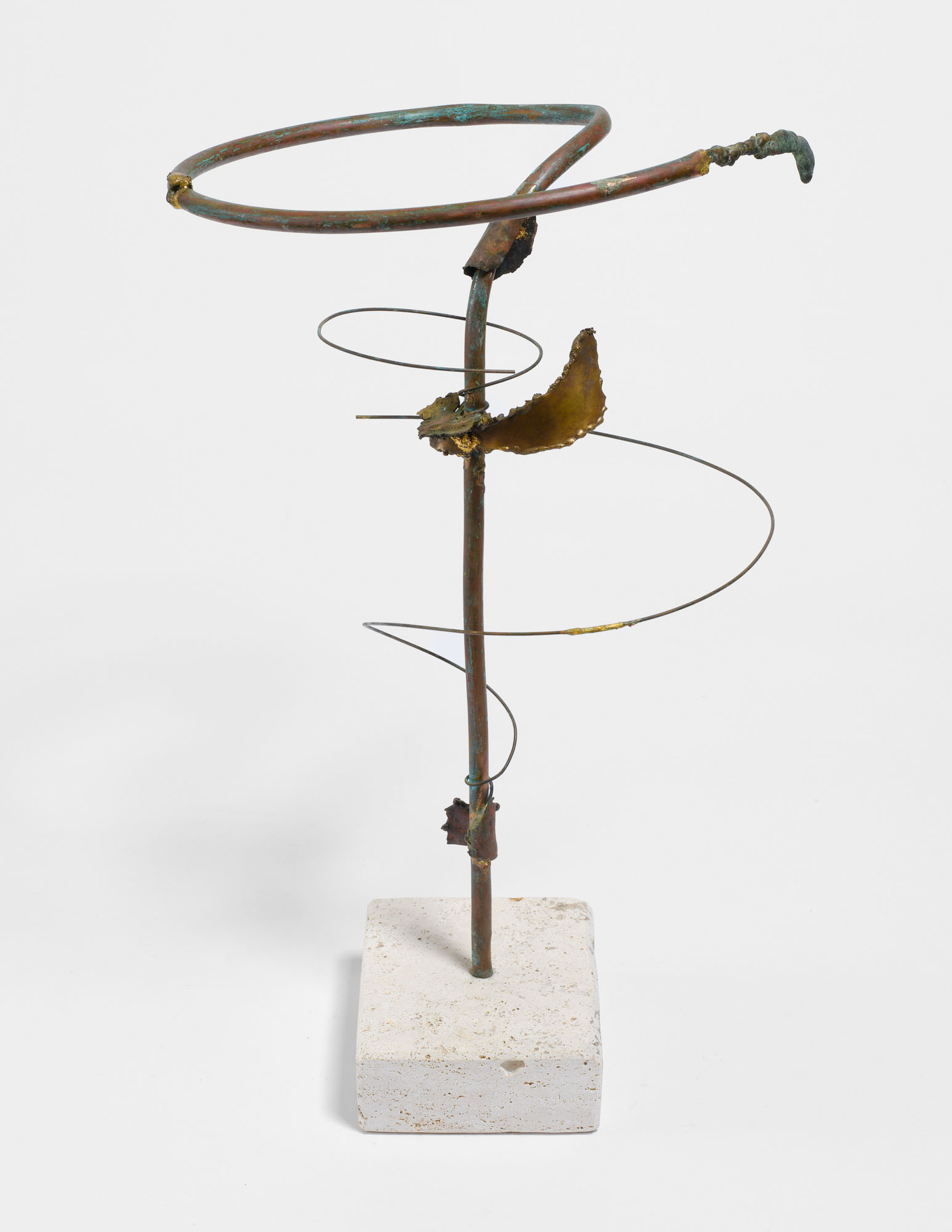 Scultura in rame, ottone, foglia d'oro, base in granito, cm 54,5 x 35 x 30 - con base h. cm 60