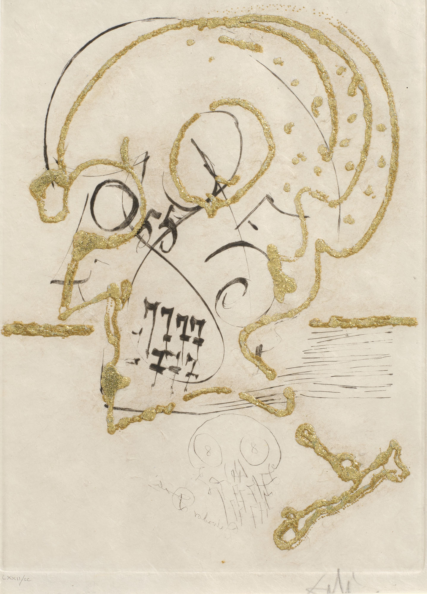 Multiplo, incisione in nero e oro su carta giapponese, cm 32 x 22,5