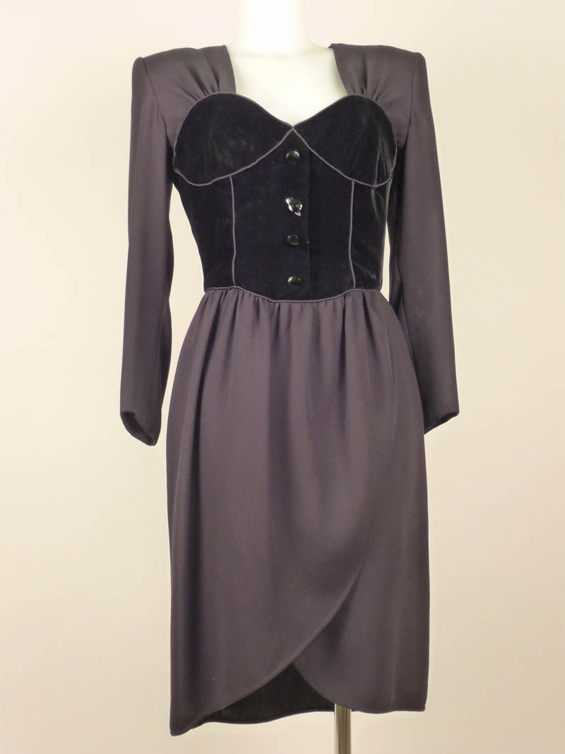 ABITO NERO DA COCKTAIL - BLACK COCKTAIL DRESS Anni Ottanta Valentino Boutique corpetto aderente a cuore in velluto liscio, gonna a portafoglio lievemente arricciata, lievi difetti tg M circa