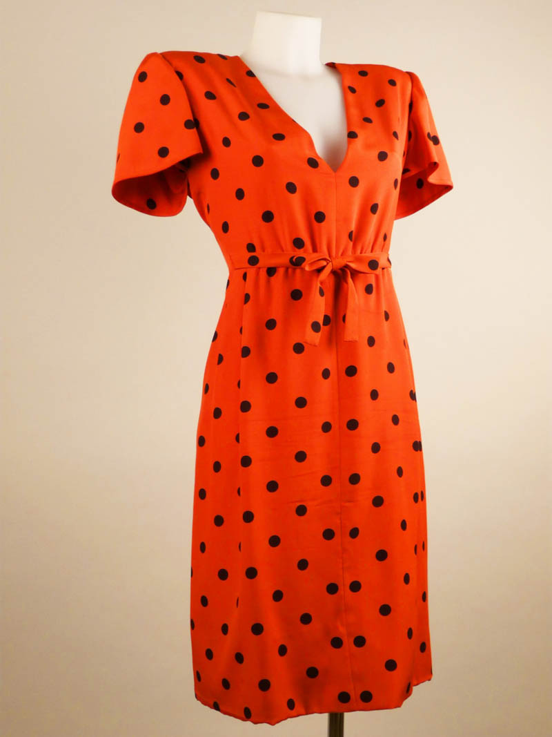 Lot 14 | ABITO IN CREPE ROSSO A POIS NERI - RED CREPE DRESS WITH BLACK POIS Anni...