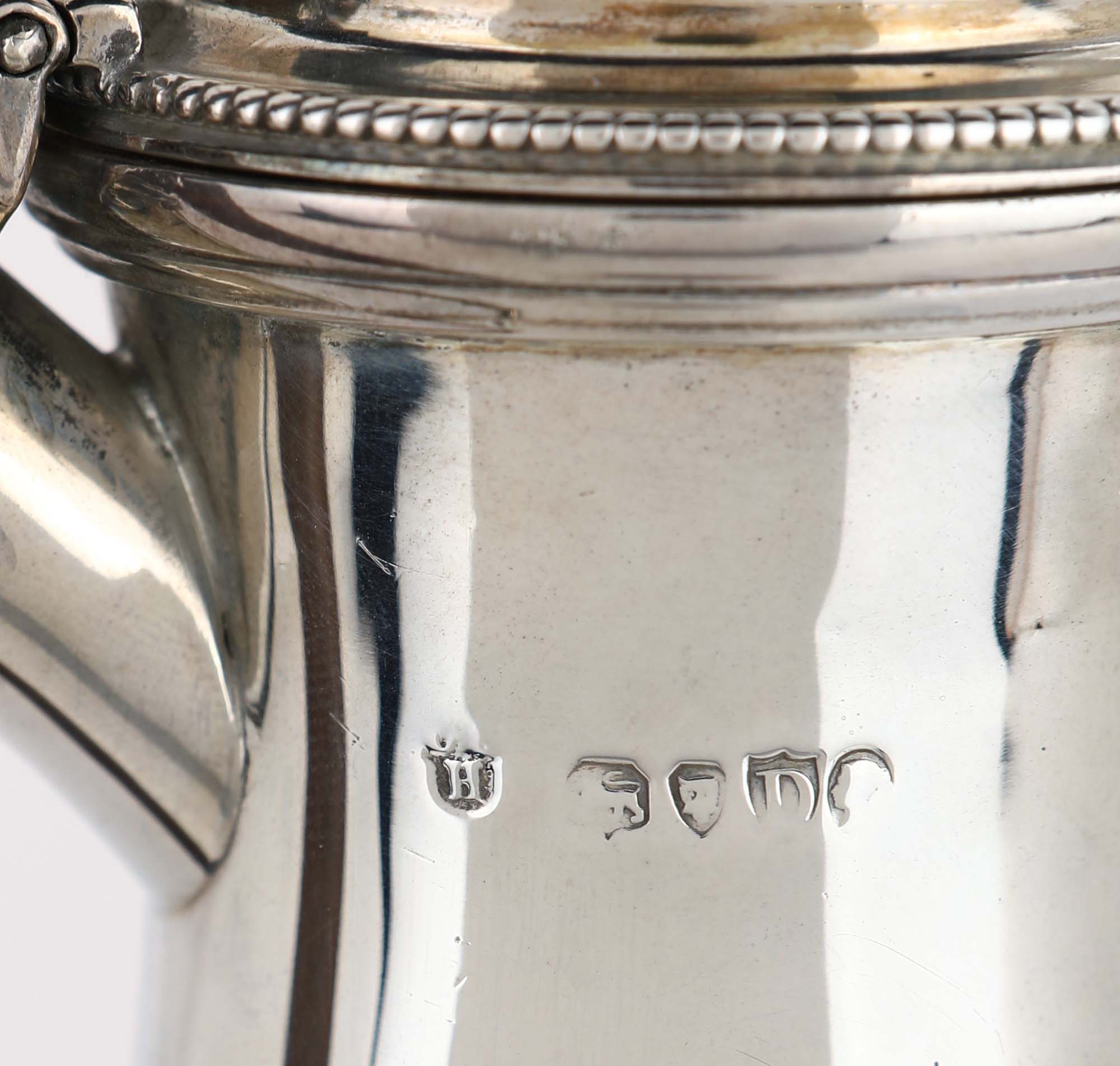 Caffettiera Londra 1879 coperchio a cupolino incernierato, versatoio a becco...