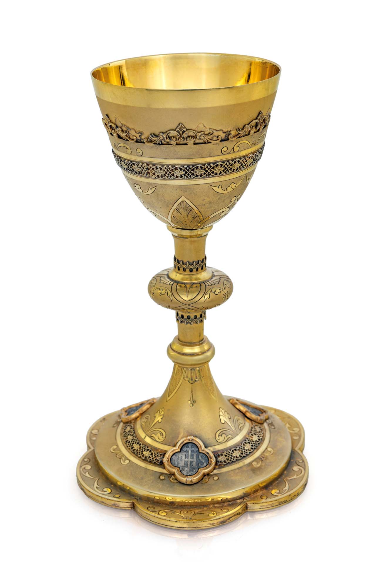 Lot 129 | Calice in argento e in metallo dorato con i simboli della passione piede a...