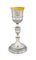 Calice in argento con profili a palmette coppa con interno dorato con parte inferiore caratterizzata da lunghe foglie lanceolate; sostegno a vaso su piede circolare