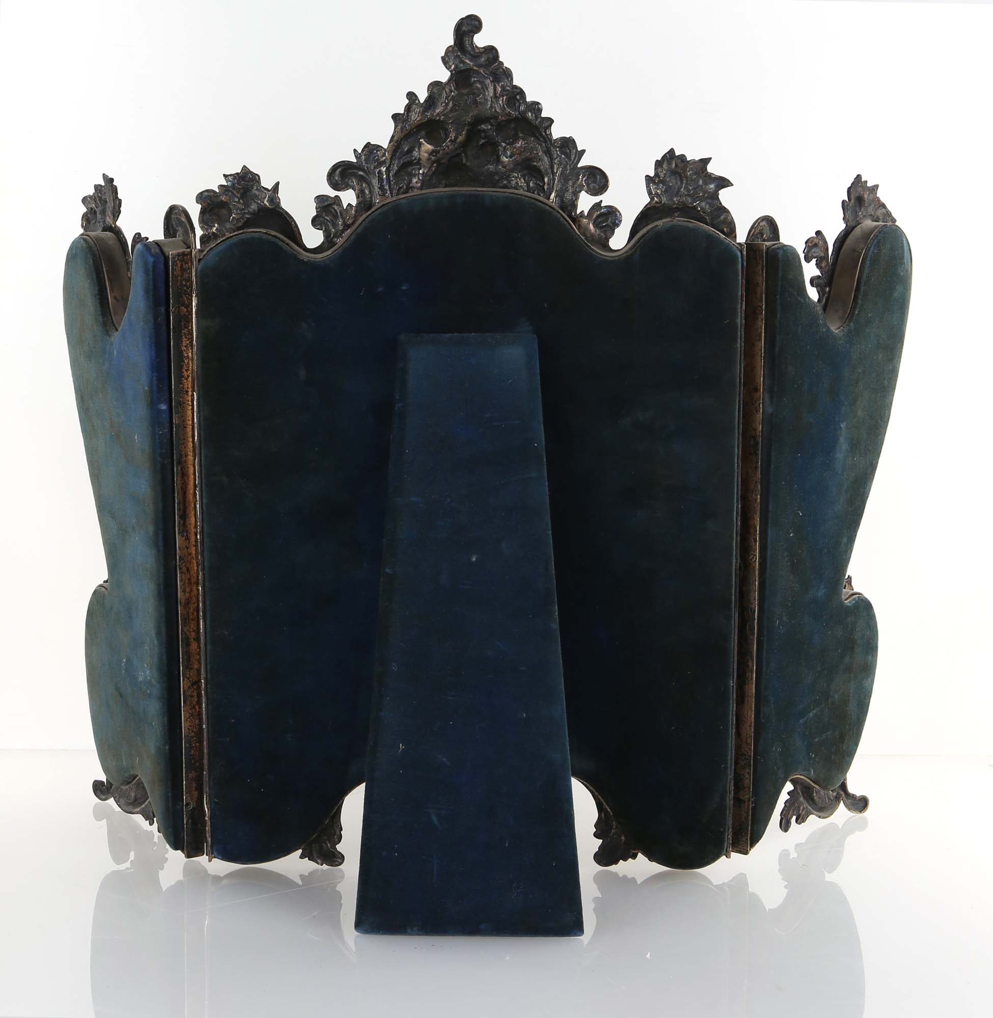 Grande cartagloria a trittico in argento con cornice sagomata costituita da...