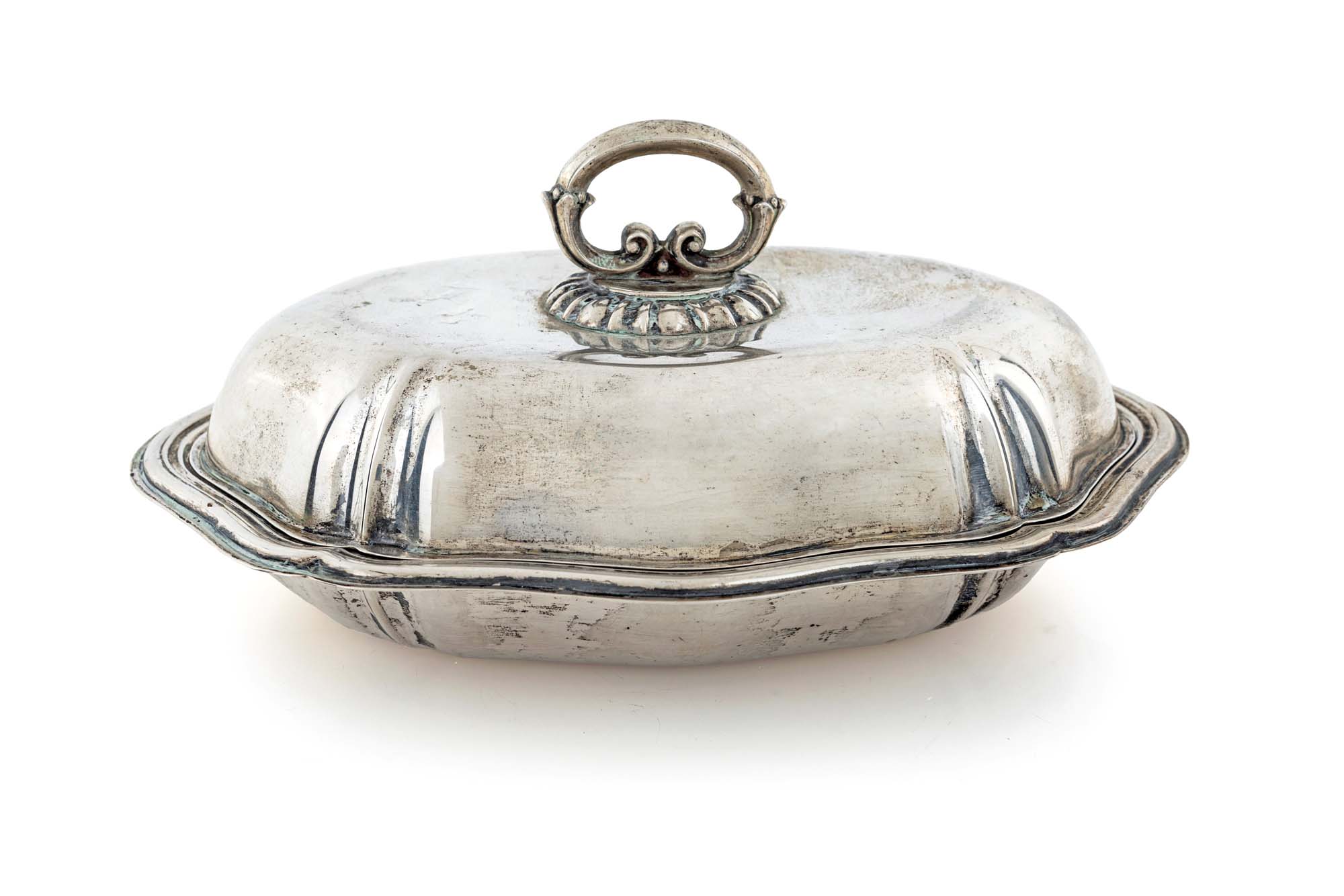 Lot 140 | Portavivande ovale con coperchio orlo sagomato percorso da nervatura,...