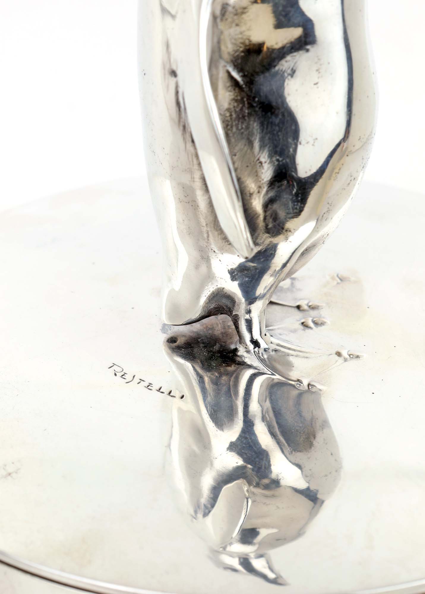 Contenitore in argento 800/000, Filippo Chiappe, Genova XX secolo caratterizzato da figura di pinguino le cui impronte impresse sono visibili al verso del coperchio. Firmato sul coperchio "Restelli" cm 27x17 - gr. 984