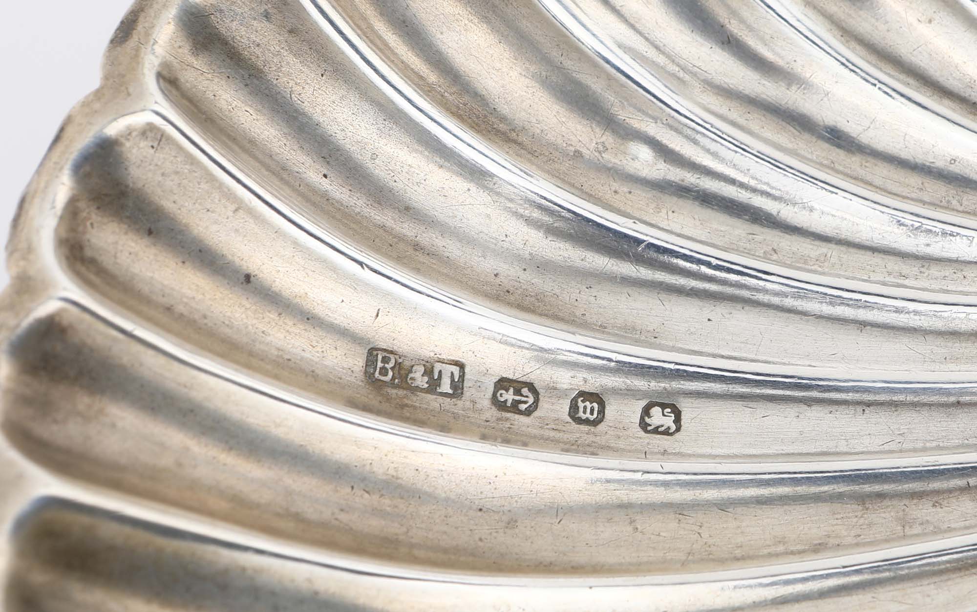 Vaschetta a forma di conchiglia con manico, Birmingham, 1896, argentiere B&T...