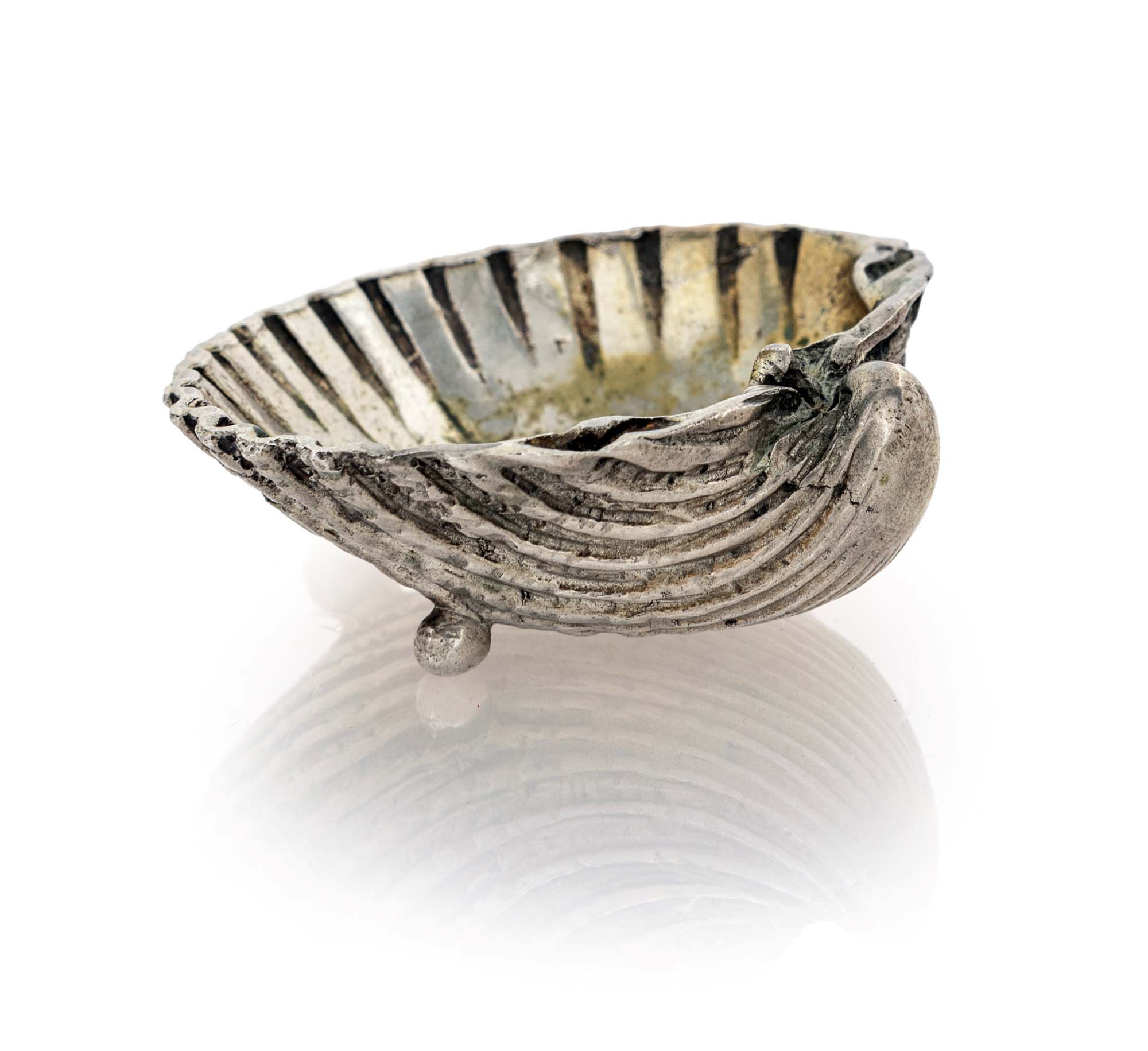 Piccola saliera in argento a forma di conchiglia vaschetta a forma di valva...