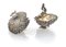Coppia di vaschette a forma di conchiglia con impugnatura scultorea a guisa di delfino e sostenute idealmente da un piccolo granchio cm 6,5x6,5x6,5 - peso complessivo gr. 160