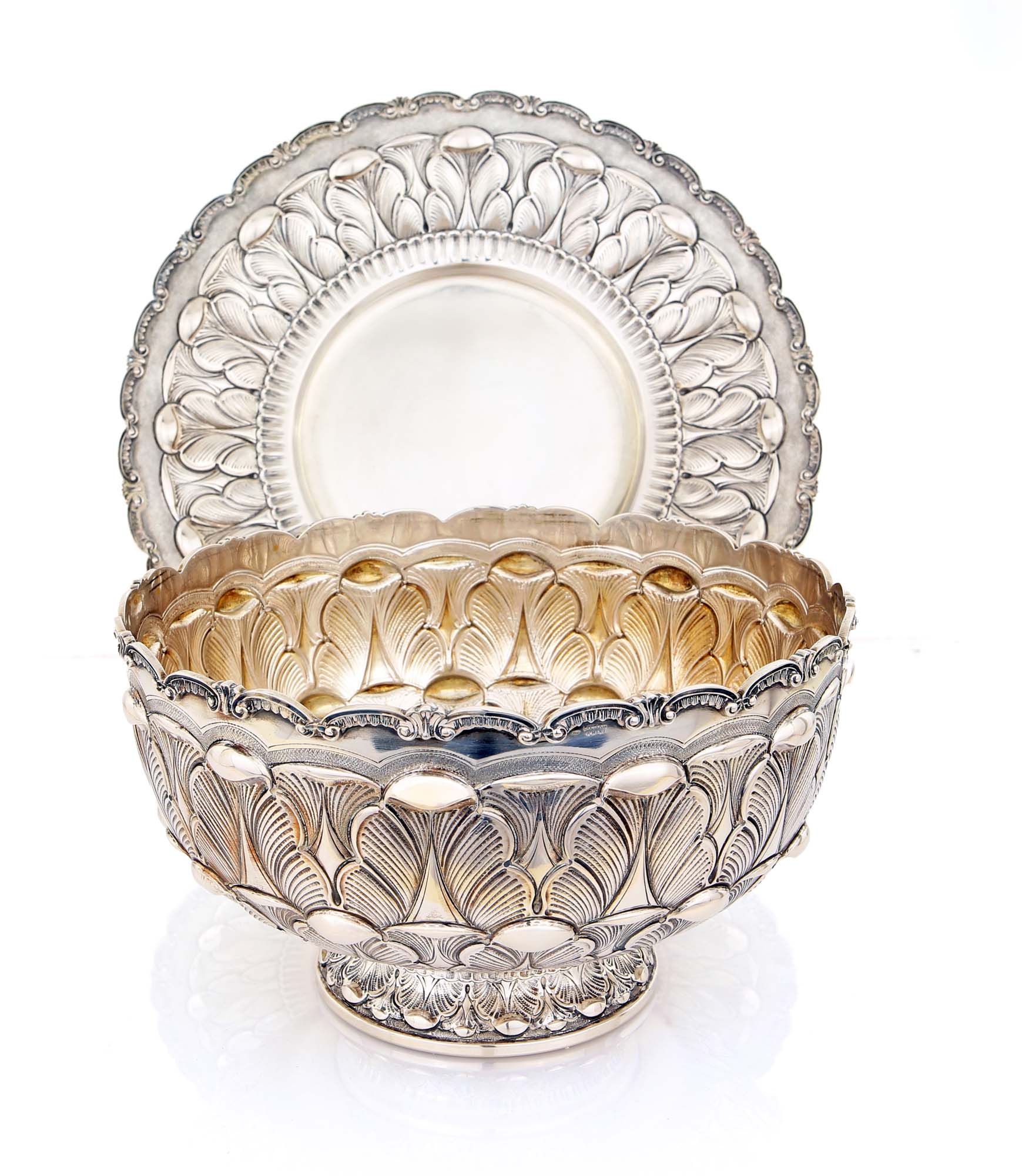 Grande coppa centrotavola con piatto, argento 800/000 lavorato a mano...