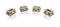 Quattro saliere in argento sbalzato con vaschette in vetro corpo rettangolare sagomato caratterizzato da minuziose ghirlande fiorite e nastri; piedi a sfera cm 3x5x3,5 - peso complessivo gr. 52