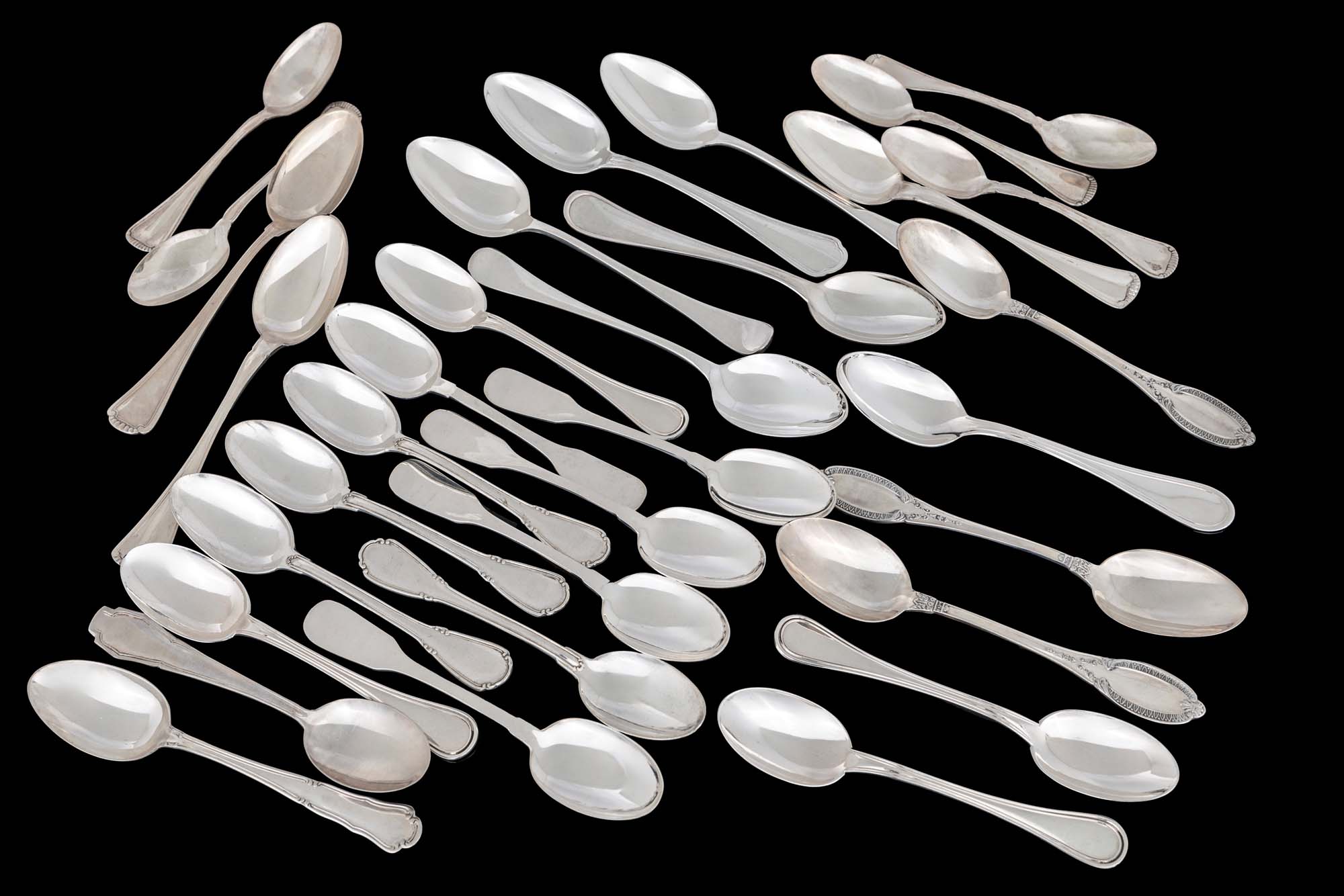 Trentadue cucchiaini da caffè e da tè appartenenti a diversi servizi cm da 11 a cm 13 - peso complessivo gr. 506
