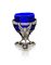 Saliera a tripode, Roma XIX secolo sostegni cesellati in forma di cherubino; base trilobata; contenitore in vetro blu a pianta ottagonale non pertinente cm 9,5x6,5 - gr. 54