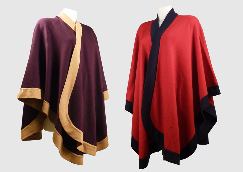 DUE MANTELLE IN LANA REVERSIBILI - TWO REVERSIBLE CLOAK una nei toni del blu e del rosso, e l'altra nei toni del beige e del viola tg unica
