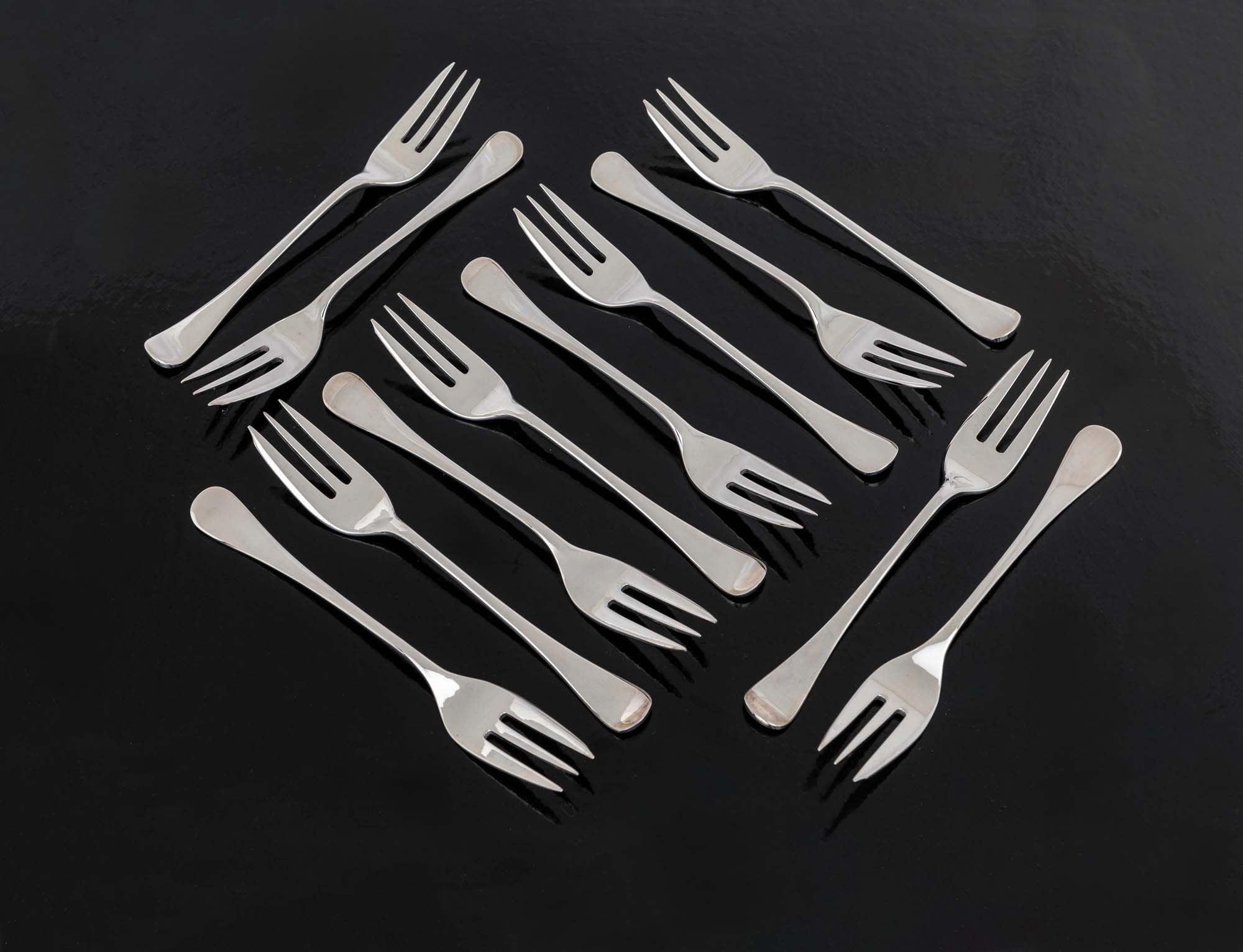 Lot 313 | Dodici forchette da dolce impugnatura liscia cm 13,3 - peso complessivo gr. 292