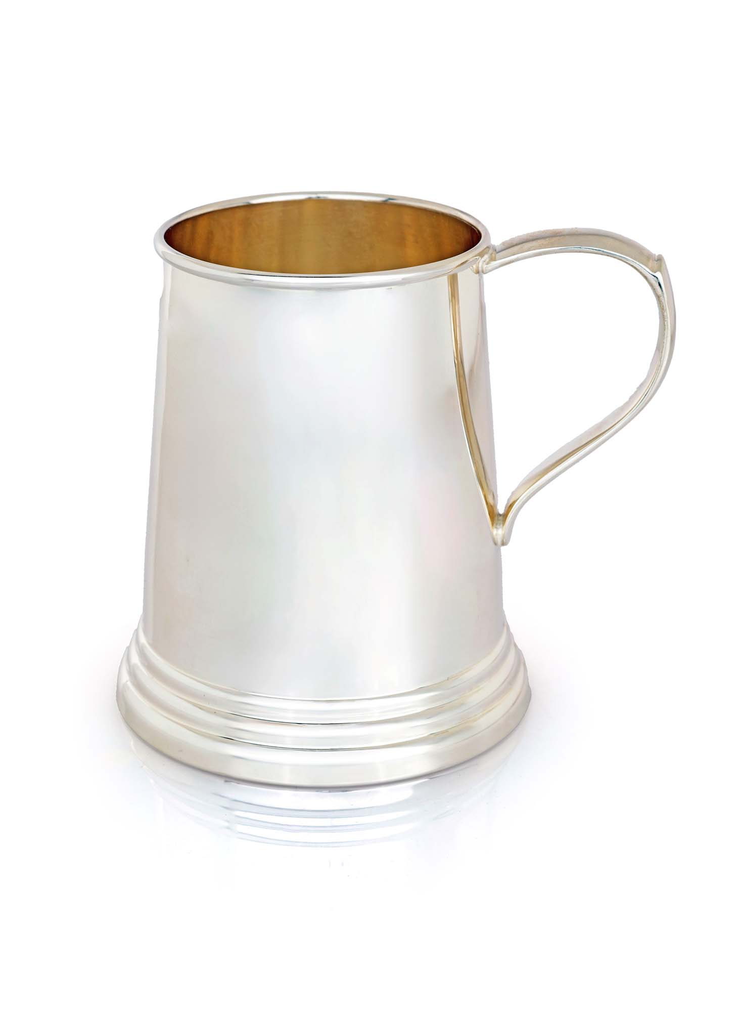 Boccale in argento 925/000 caratteristica forma troncoconica a superficie liscia su piede gradinato; manico sagomato cm 11,5x12x7,5 - gr. 240