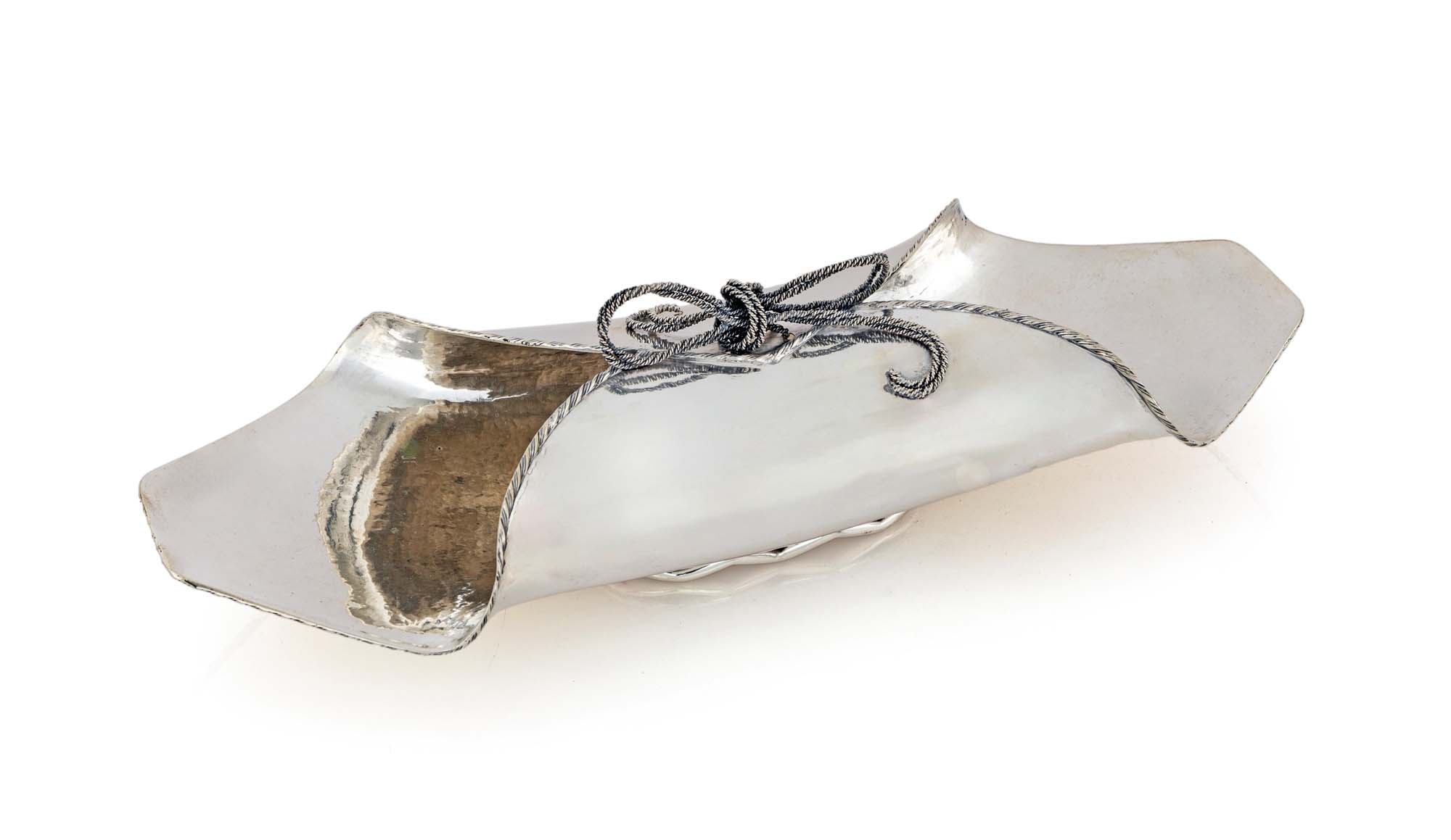 Porta grissini in argento, Faccioli con profilo percorso da un cordolo annodato a fiocco sulla sommità