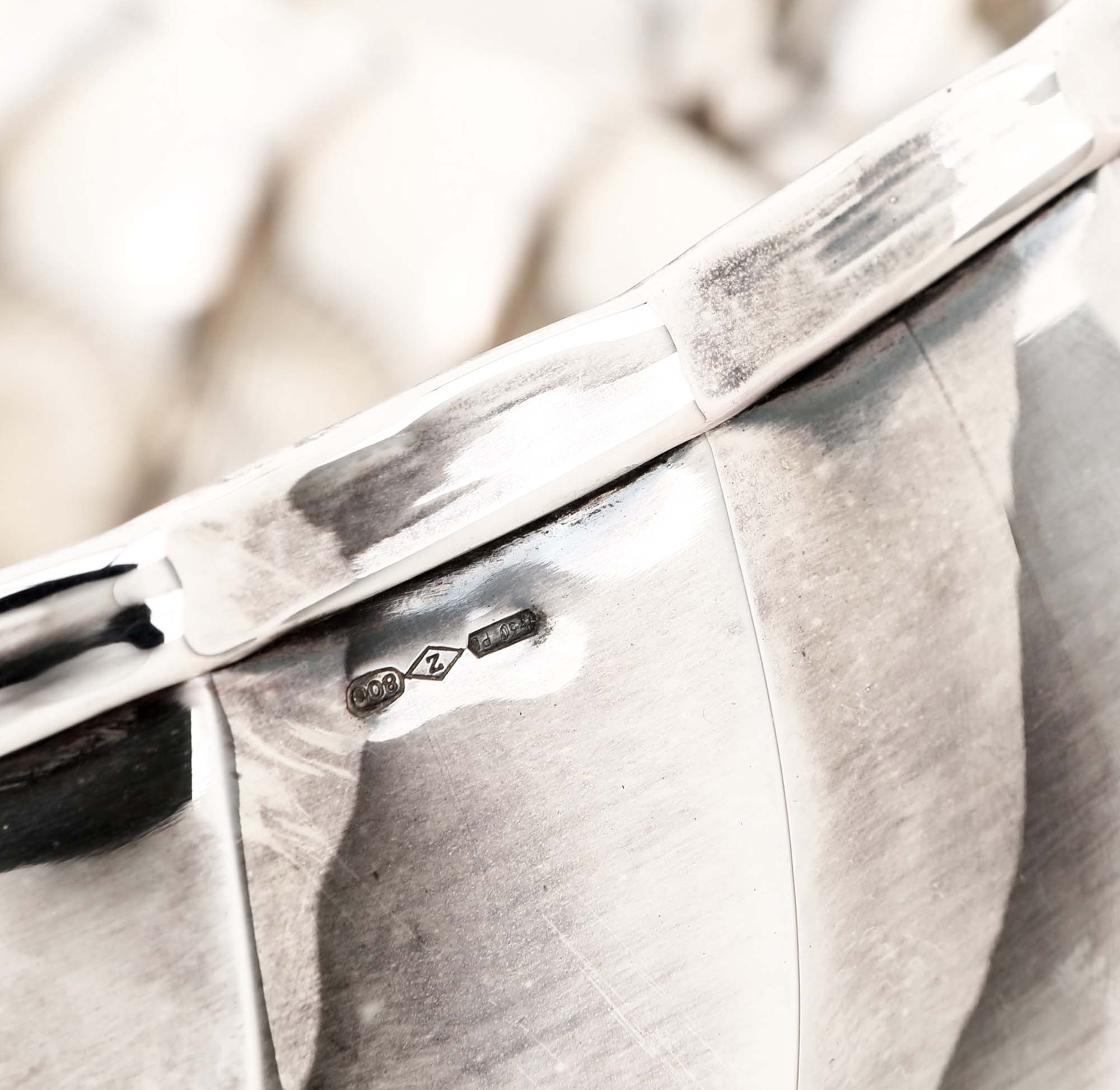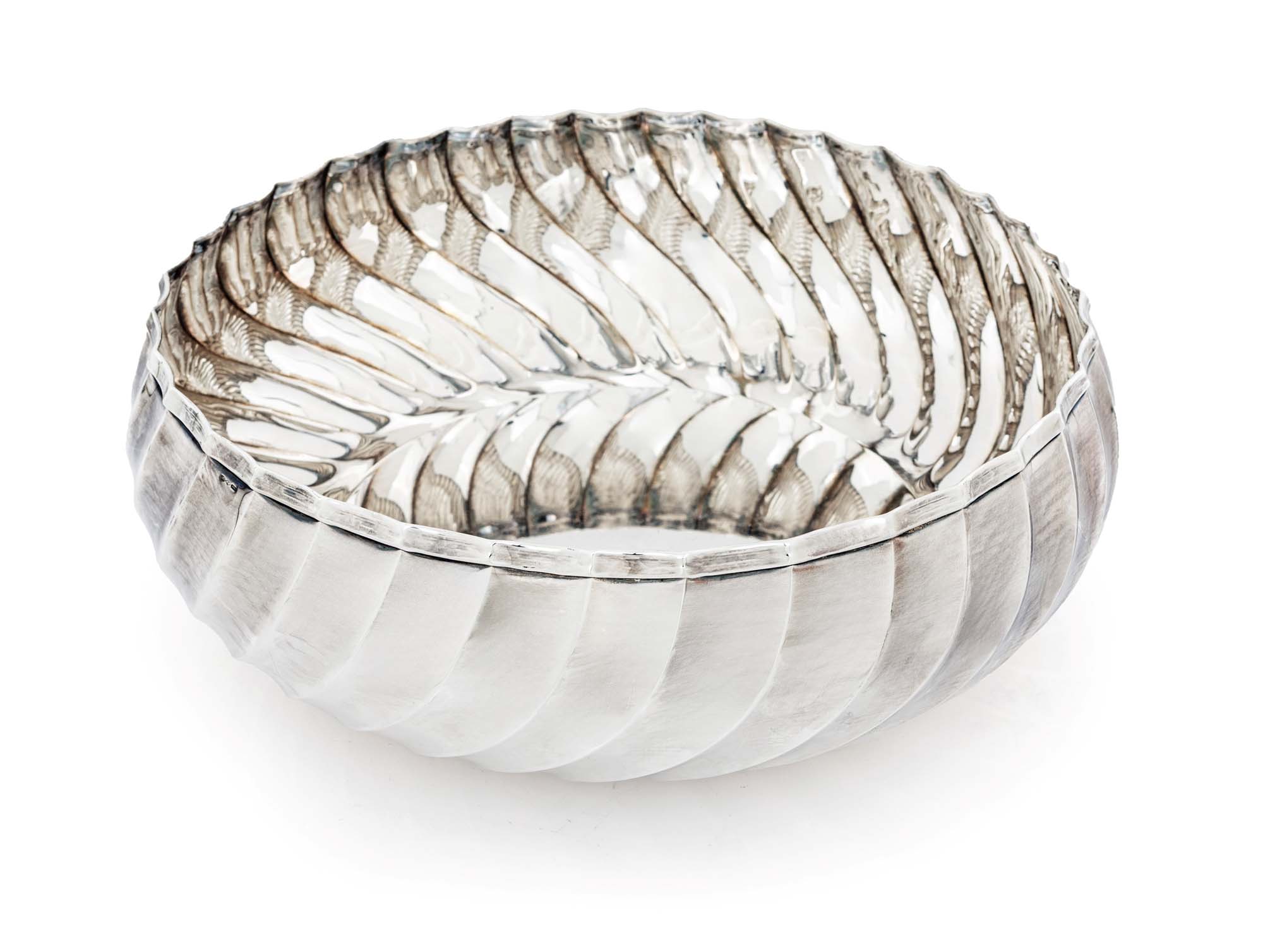 Centrotavola circolare in argento 800/000 fascia bombata segnata da larghe...