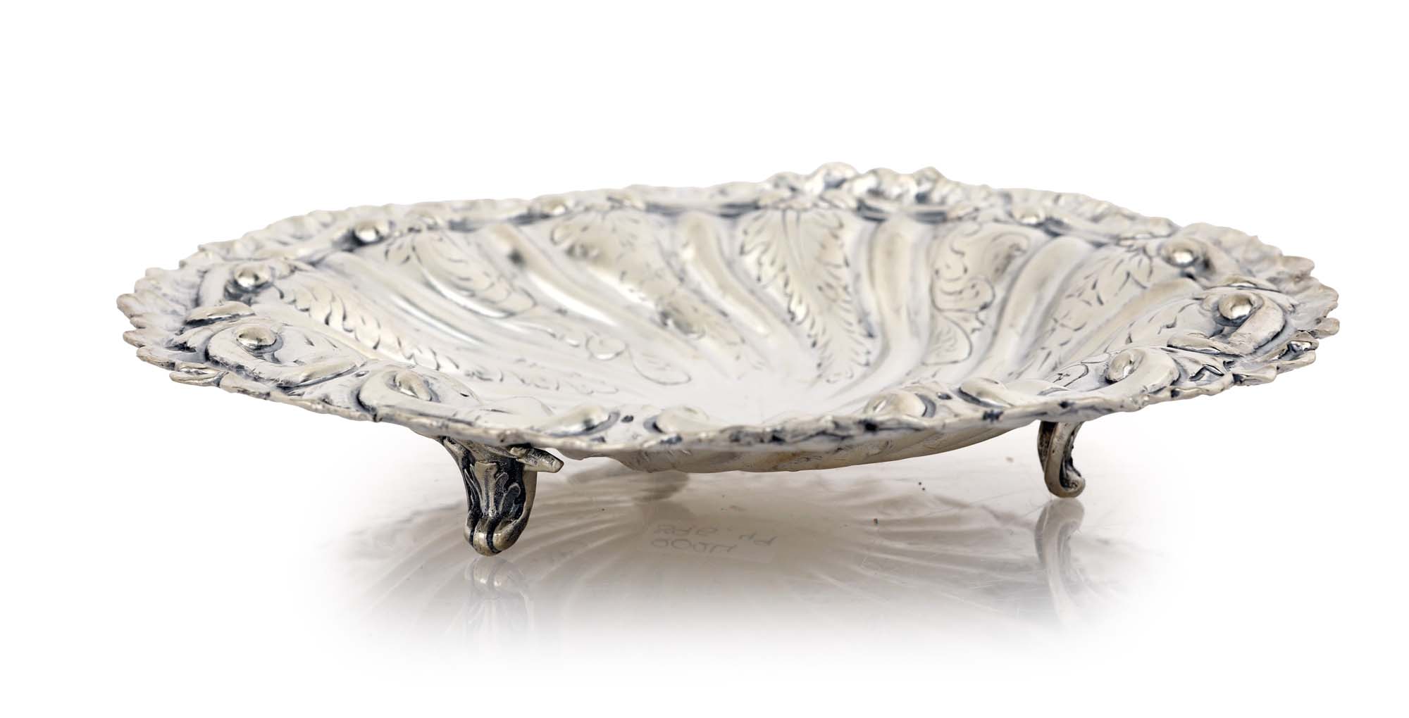 Alzatina con volute sbalzate e tre piedi cm 4x23 - gr. 346