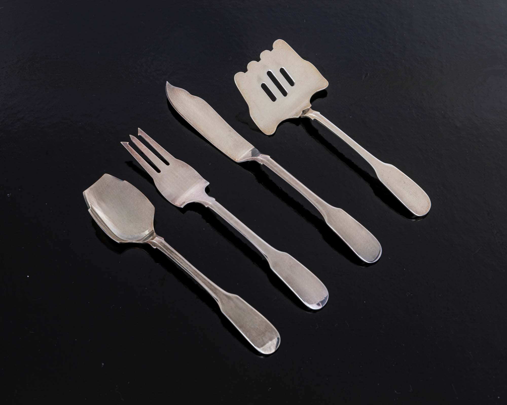 Quattro posate da antipasto con impugnatura a scudo liscio cm 12,5 (2); cm...