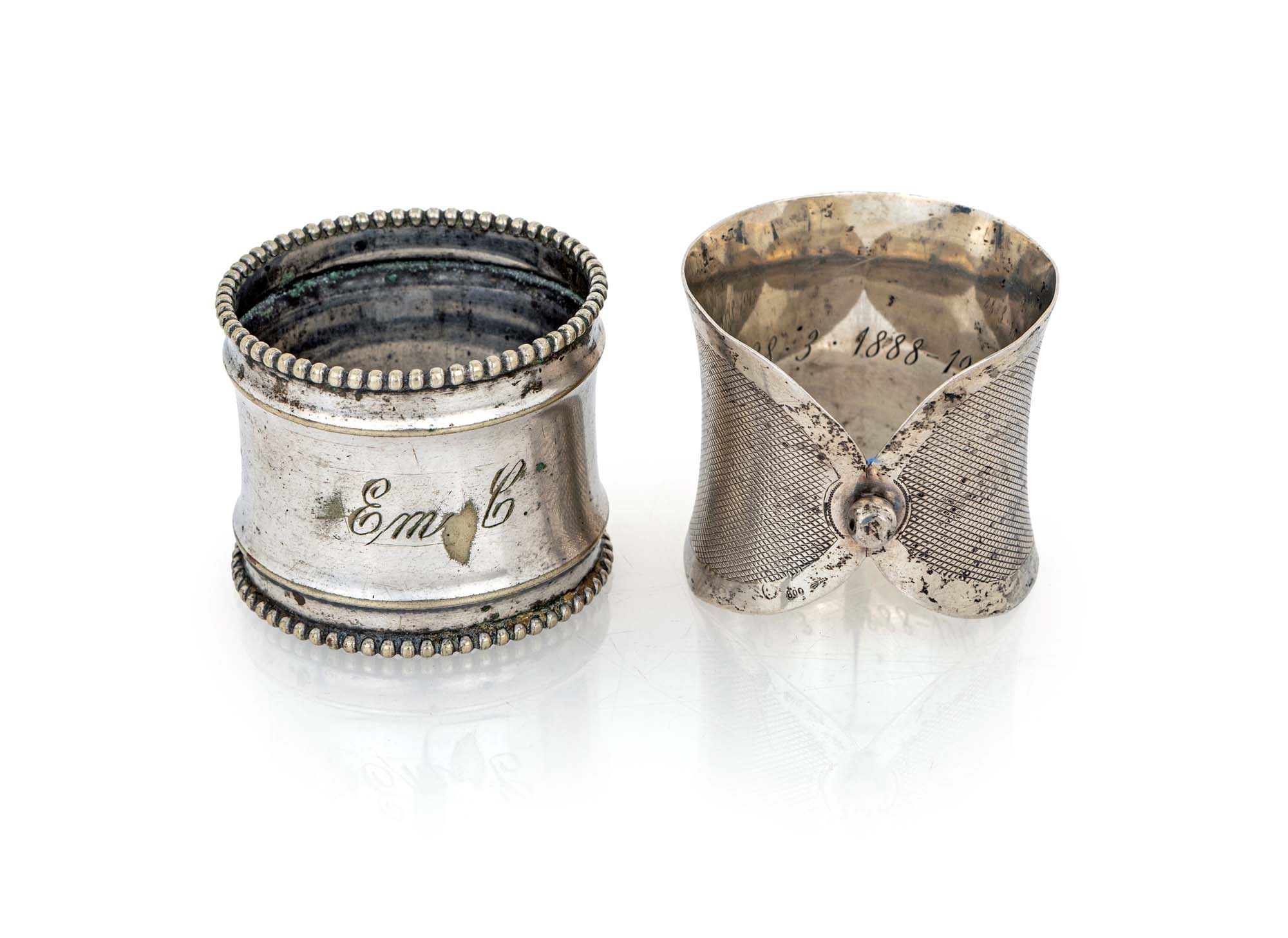 Lot 383 | Due portatovagliolo ad anello diversi uno a forma di polsino trattenuto da...