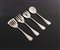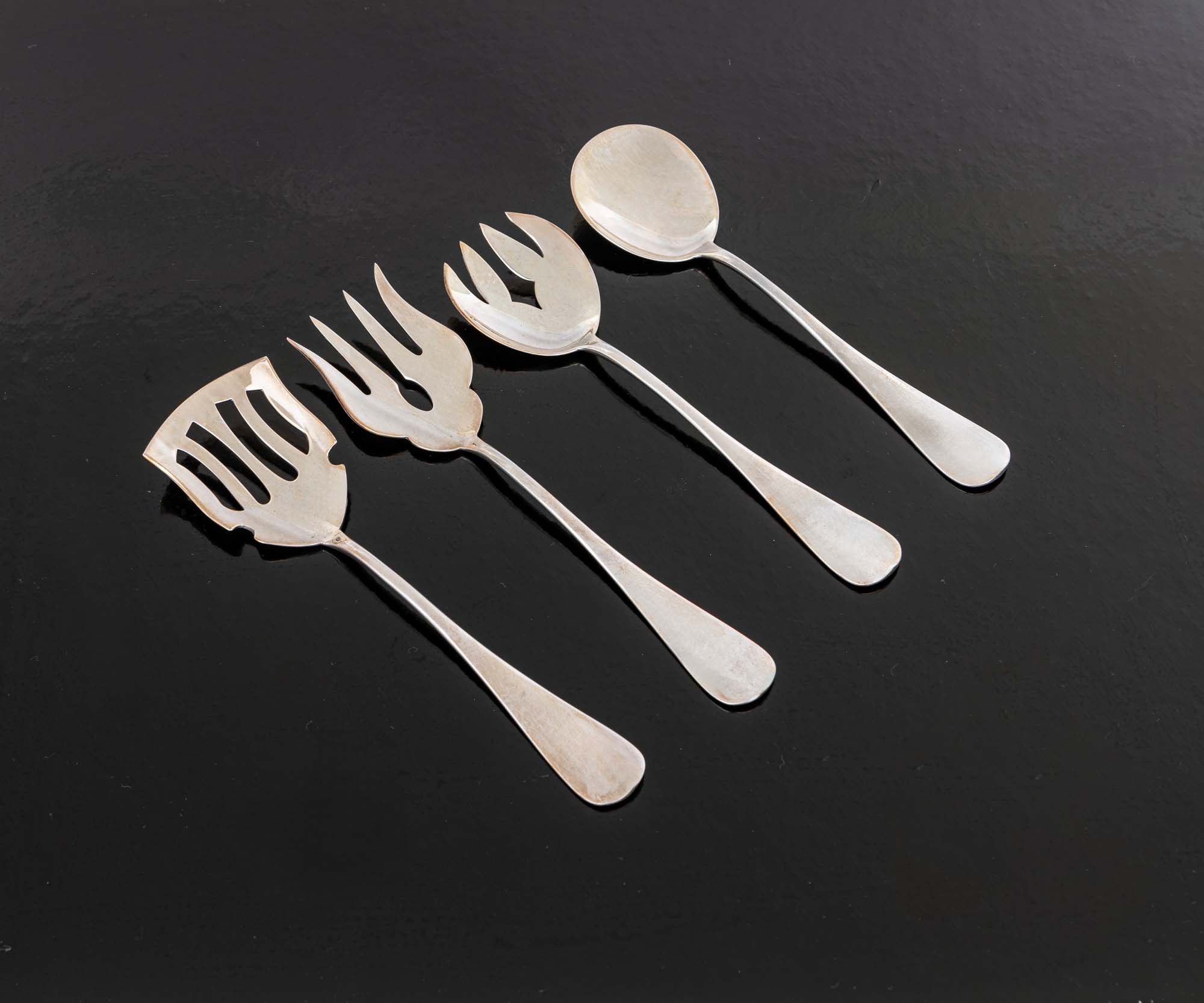 Quattro posate da antipasto con impugnatura a scudo "spagnolo" cm 13 e cm 13,7 - peso complessivo gr. 94
