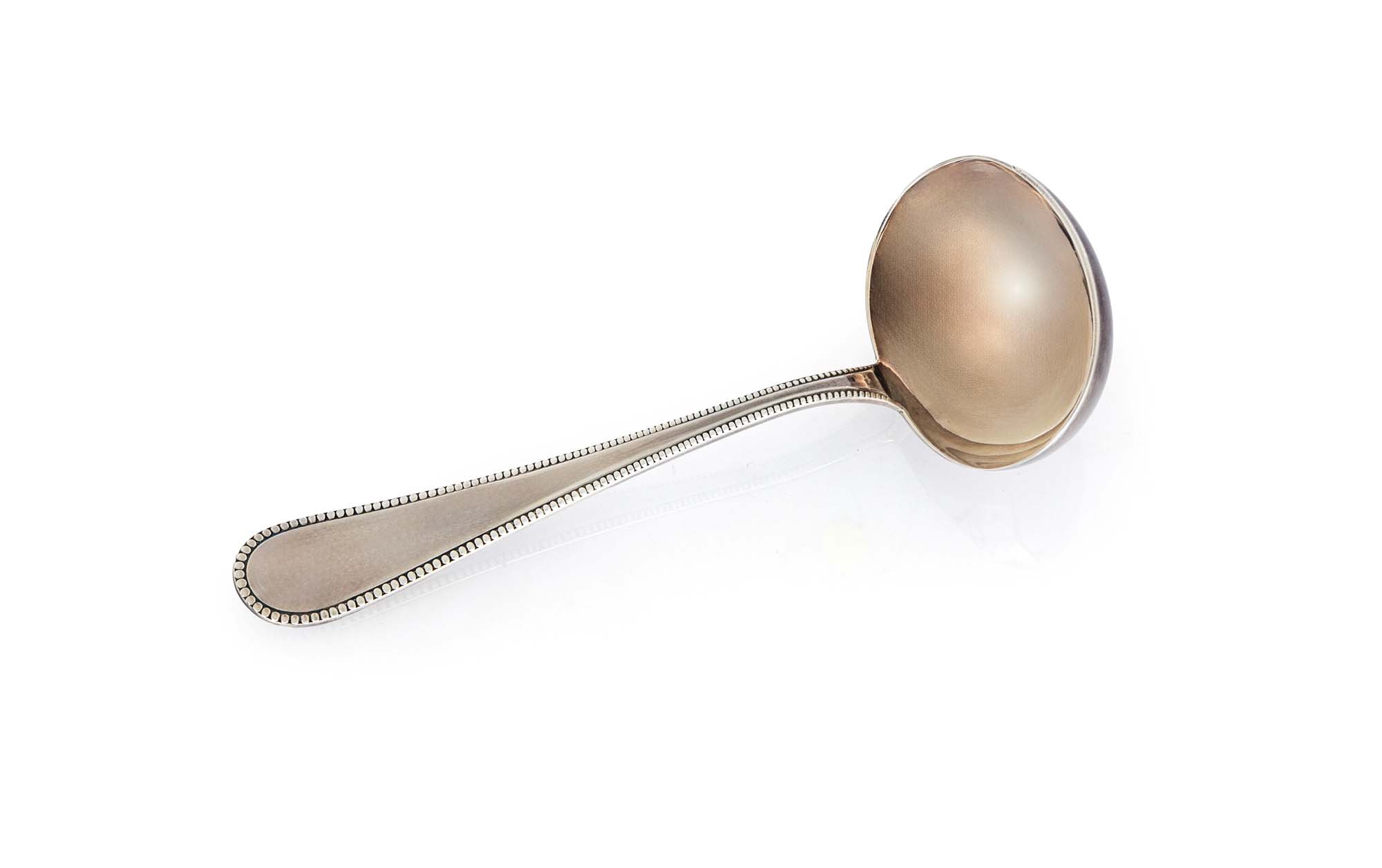Piccolo mestolo da salsa con impugnatura sottolineata da profilo perlinato cm...