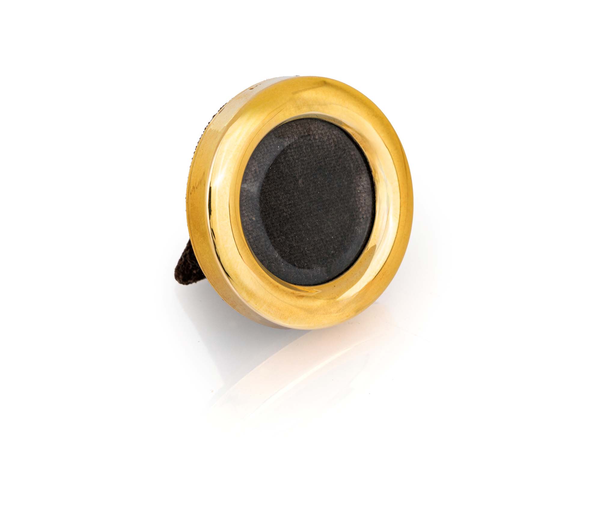 Piccola cornice da tavolo in argento dorato di forma circolare con vetro molato e supporto in velluto diametro cm 4 - luce cm 2,7