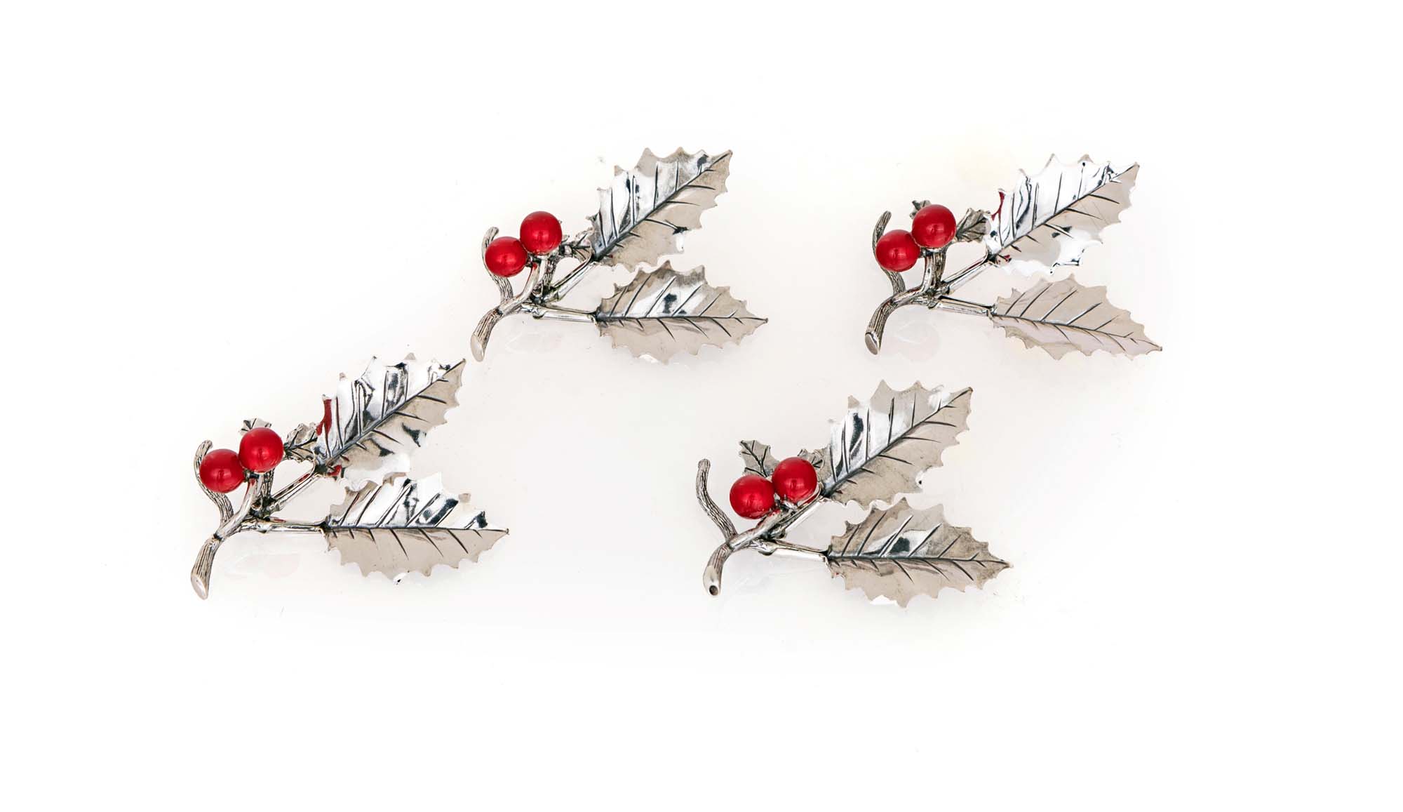 Quattro piccoli tralci di pungitopo con bacche smaltate cm 4x2,5 ca. ognuno - peso complessivo gr. 12
