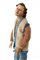 Giovane rustico con capelli mossi e bocca socchiusa; camicia marrone, gilet...
