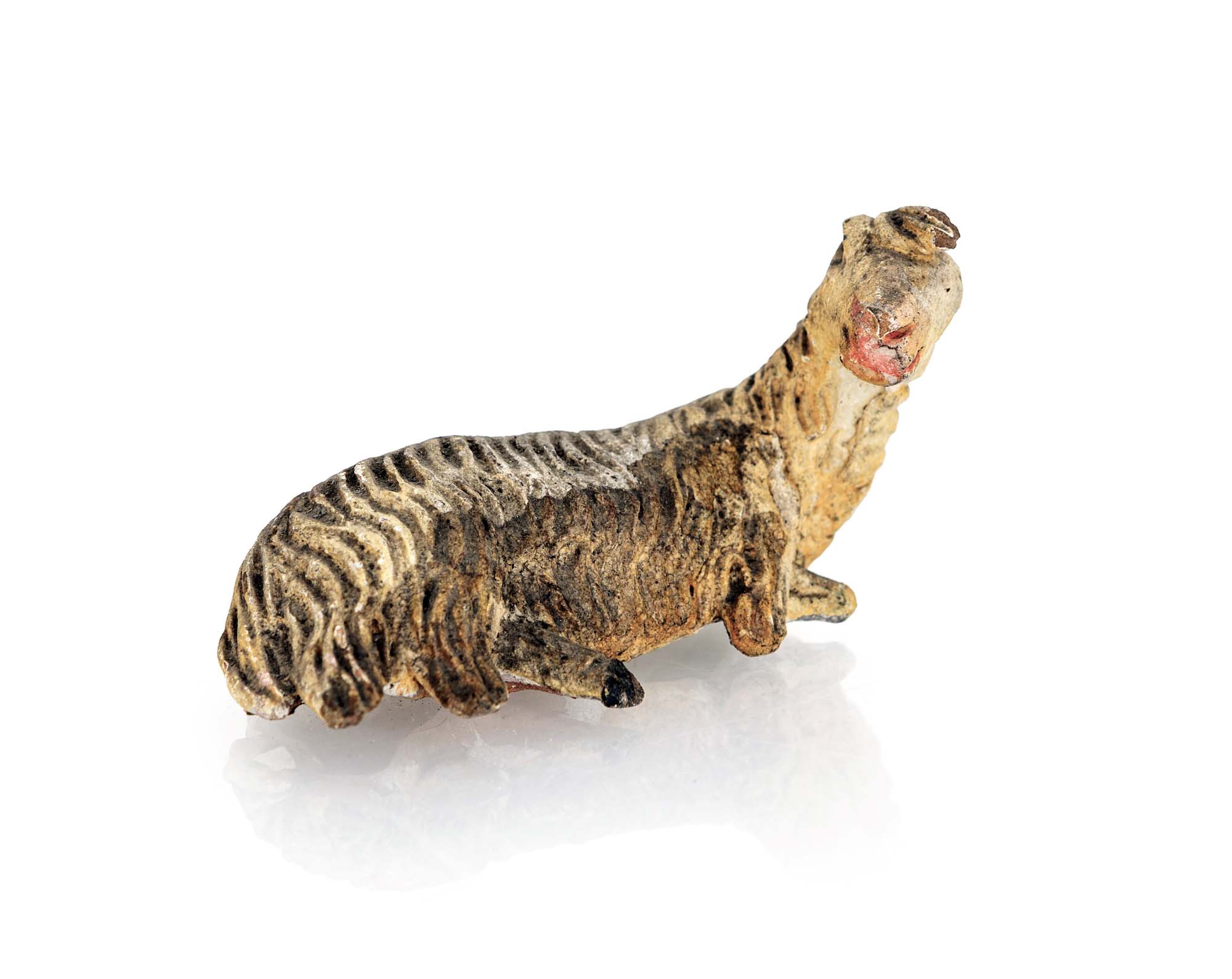 Pecora accosciata in terracotta policroma difetti e mancanze cm 4,5x8 Collezione Marchesi Gallo di Castrovillari (Cosenza)