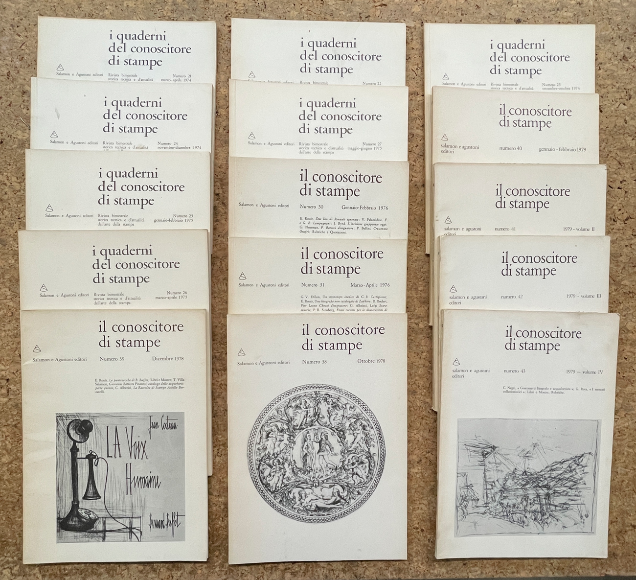 Lotto unico di 15 numeri della rivista bimestrale storica tecnica e d'attualità dell'arte della stampa 'I quaderni del conoscitore di stampe', editi tra il 1974 e il 1979