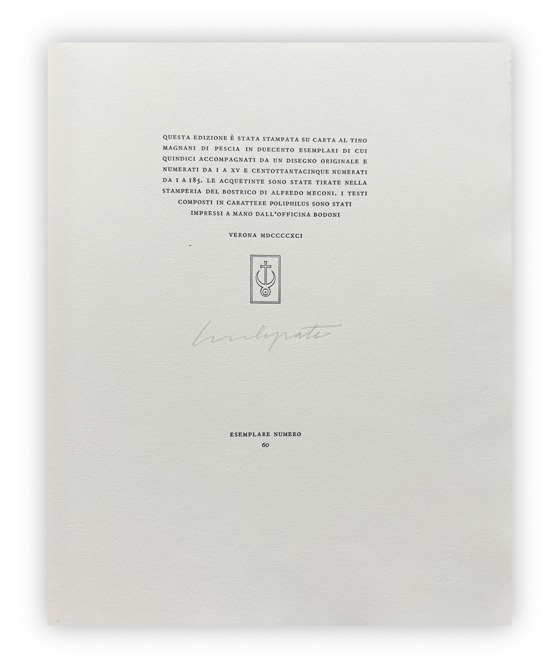 Le acquetinte sono state tirate nella Stamperia del Bostrico di Alfredo Meconi