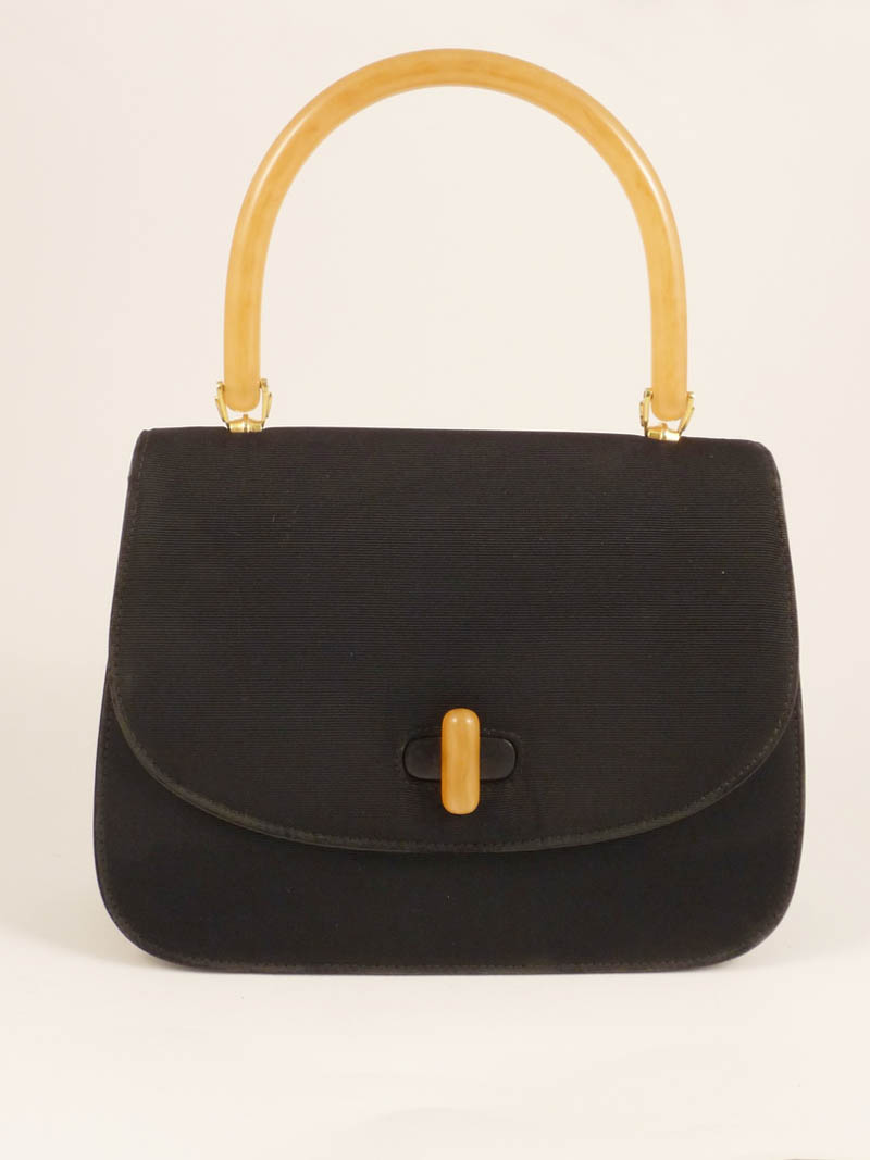 BORSA A MANO IN TESSUTO BLU CON MANICO E CHIUSURA IN BAKELITE - HANDBAG IN BLU FABRIC WITH HANDLE AND LOCK IN BAKELITE Gucci, Anni Sessanta lievi difetti