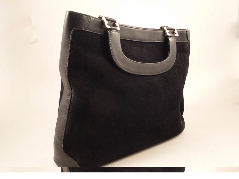 BORSA A MANO IN PELLE E VELLUTO NERO - HAND BAG IN BLACK LEATHER AND VELVET Salvatore Ferragamo logo in metallo dorato sui manici, difetti