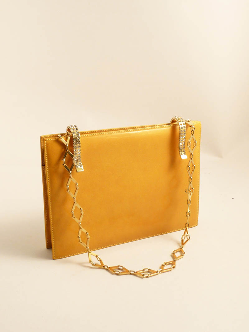 POCHETTE DA SERA IN PELLE SENAPE CON DETTAGLI IN STRASS ARGENTO - EVENING...