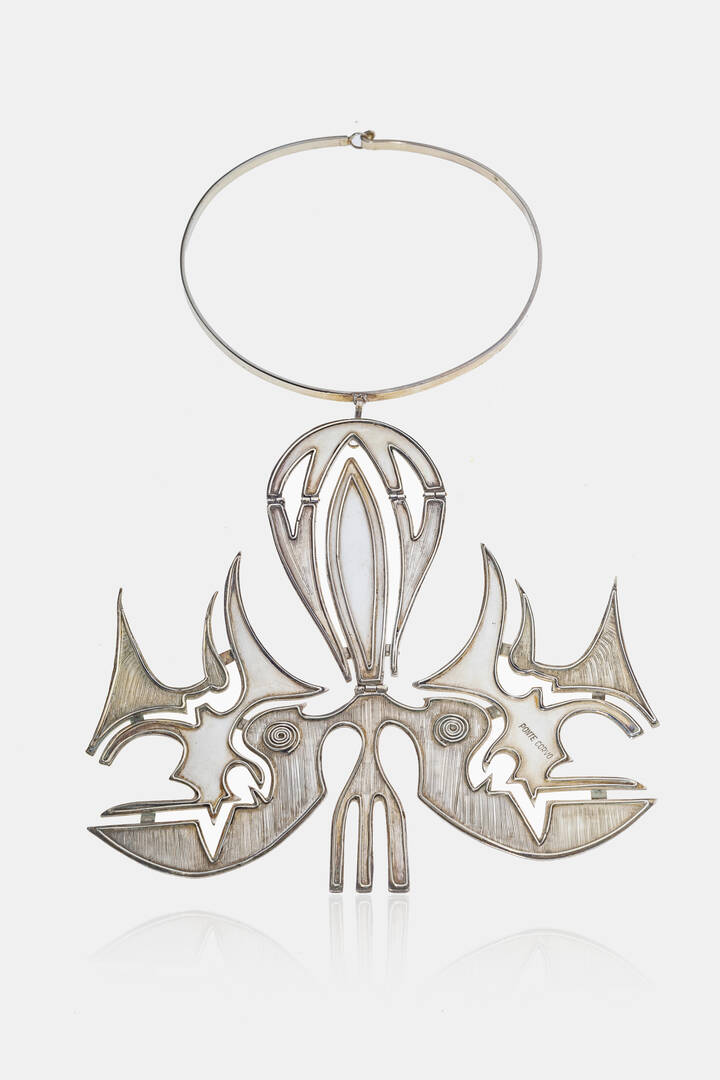 Girocollo in argento 925/1000, firmato "Pontecorvo", es. 1/3, con grande ciondolo astratto.
