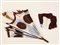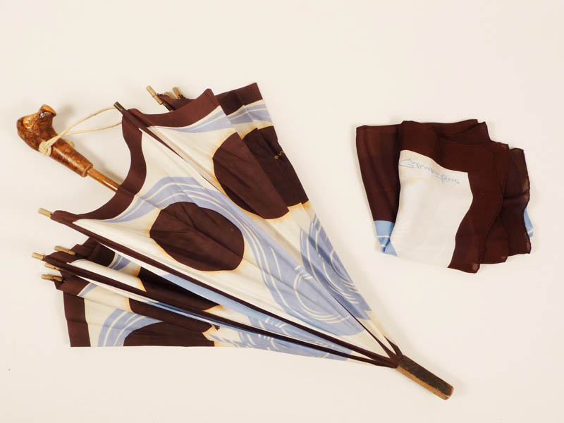 LOTTO - LOT ombrello nei toni del marrone, bianco e blu con manico in legno lavorato,Gianantonio e un foulard coordinato, macchie e difetti