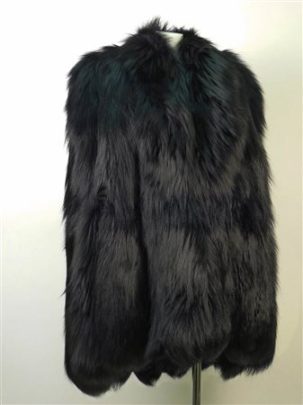 MANTELLA NERA IN PELLICCIA DI CAPRA - BLACK GOAT CAPE Salvatore Ferragamo foderata in seta tg 42