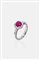 in oro bianco, sommità a margherita, al centro rubino taglio ovale di ct 0,95 ca e diamanti taglio brillante per totali ct 0,40 ca, probabile colore G-H, purezza IF-VVS