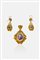in oro giallo, XIX secolo, composta da coppia di orecchini e ciondolo con vano porta capelli e struttura in vetro (al retro). Decori con micromosaici a soggetto floreale (basi dei micromosaici non in oro). Entro scatola d'epoca.