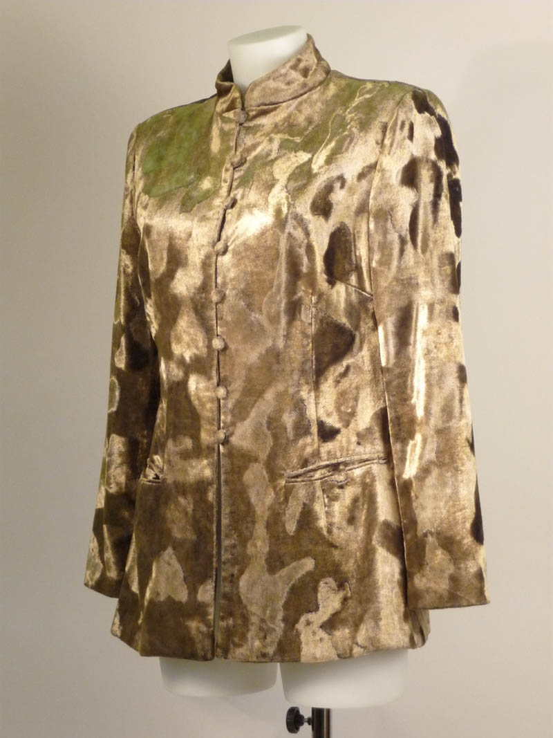 GIACCA VERDE MUSCHIO IN VELLUTO RASATO - SHAVED VELVET GREEN JACKET collo alla coreana, bottoni rivestiti, tasche a taglio tg M