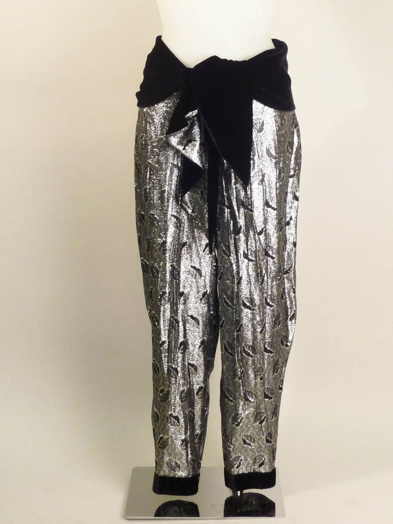PANTALONI ORIENTALI ARGENTO - SILVER ORIENTAL TROUSERS Enrico Coveri fascia in velluto nero sulla vita tg M circa