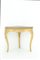 Two antique corner cabinets in lacquered and gilded wood with Lumachella marble top. Slight defects. 91x68 cm approx. Due antiche angoliere in legno laccato e dorato con piano in marmo Lumachella. Lievi difetti. 91x68 cm ca.